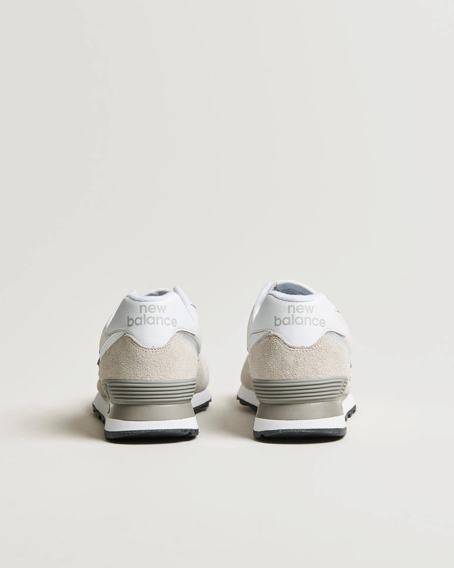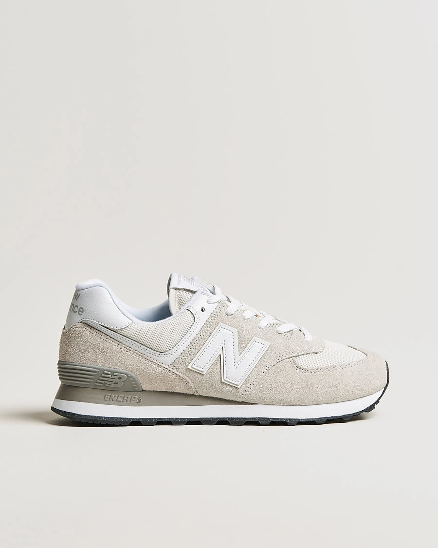 574 fra New Balance ble utviklet for å være en pålitelig sko med mange gode egenskaper, og ikke først og fremst som en plattform for revolusjonerende teknologi eller et utstillingsvindu for førsteklasses materialer. Denne beskjedne allsidigheten er akkurat det som gjorde 574 til en av tidenes største skoklassikere. Med sitt hybride design for både veier og stier, med en bredere lest enn forrige generasjons smale sprintprofiler, tilbød 574 en unik, allsidig blanding av noe nytt, annerledes, ukomplisert, robust, slitesterkt og komfortabelt, og ble overalt i verden tatt i bruk som en favoritt. Derfor er 574 i dag synonymt med den grenseoverskridende New Balance-stilen, og brukes av alle og enhver.