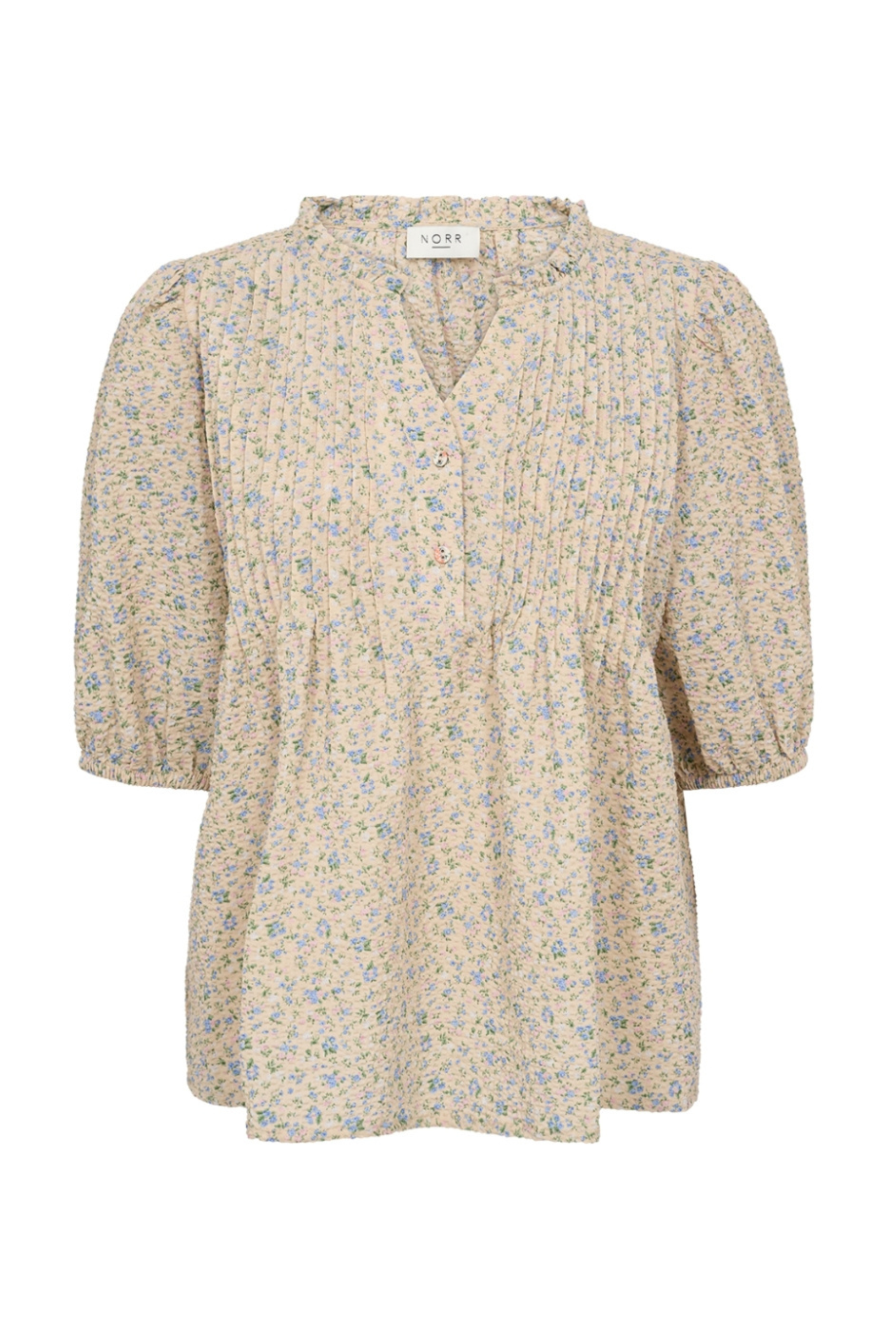 Opal Seersucker SS Top Blue Flower AOP Fra Norr er en nydelig bluse med blomsterprint. V-hals kombinert med halvlange ballongermer skaper et feminint uttrykk. Denne er virkelig perfekt når solen skinner på varme sommerdager! Får du ikke nok av dette nydelige printet? Sjekk ut kjolen i samme stil!
