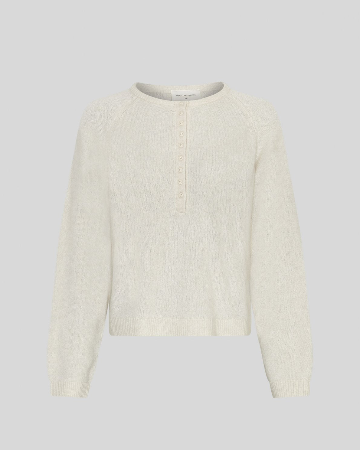 MschPalema Alegria Pullover fra MSCH Copenhagen er en strikket genser med rund hals og knappelukking foran. Modellen har raglanermer og ribbekanter i hals, ermer og nederst.