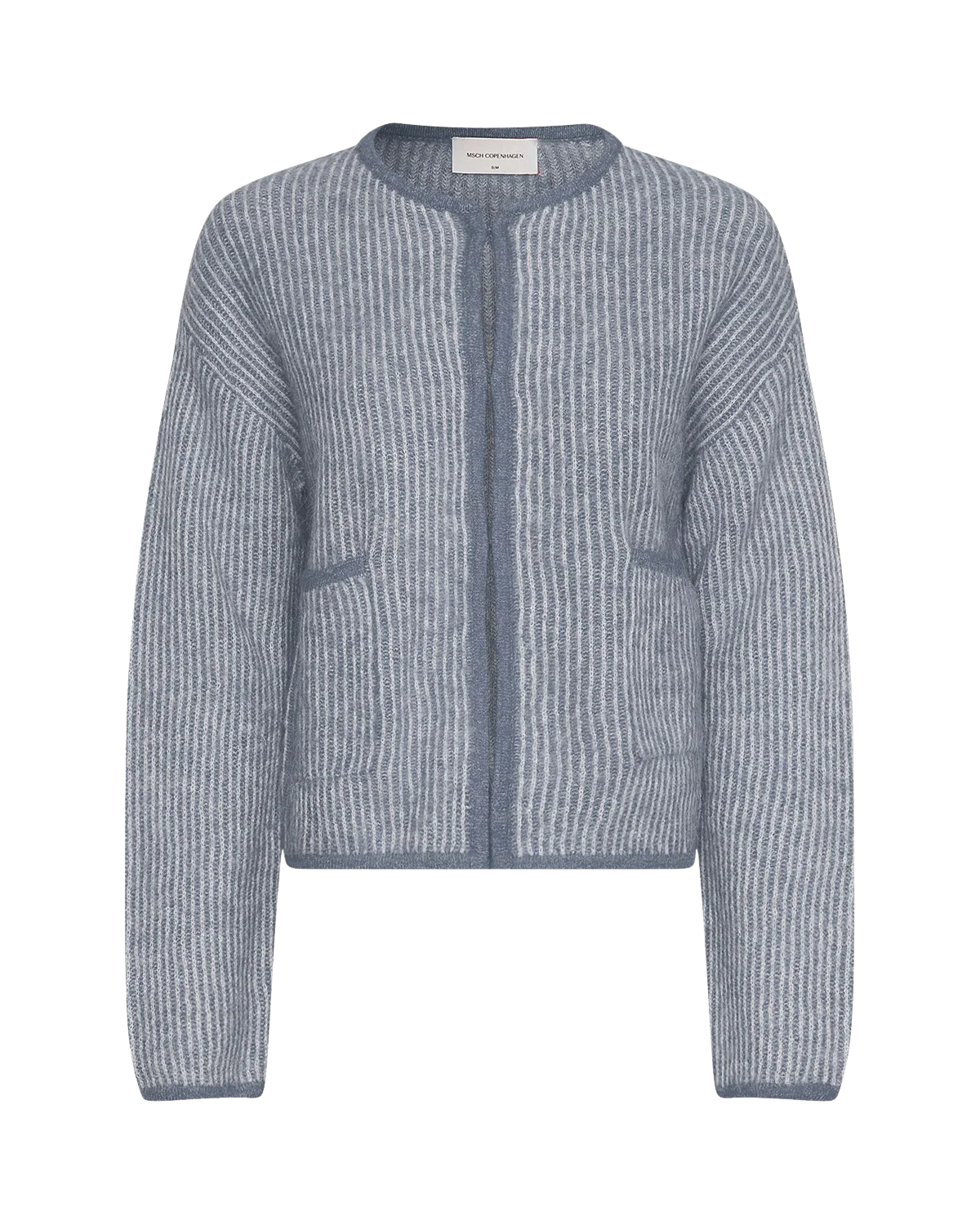 Eliza Nenaya Cardigan Stp fra Moss Copenhagen er en myk, stripet cardigan du bruker hele sesongen. Den har rund hals og lukkes med små hekter i front for et rent, minimalistisk uttrykk. Kontrastfargede kanter langs hals, front og nederkant rammer inn fasongen, mens to lommer, droppede skuldre og lange ermer gir en avslappet, rett passform.