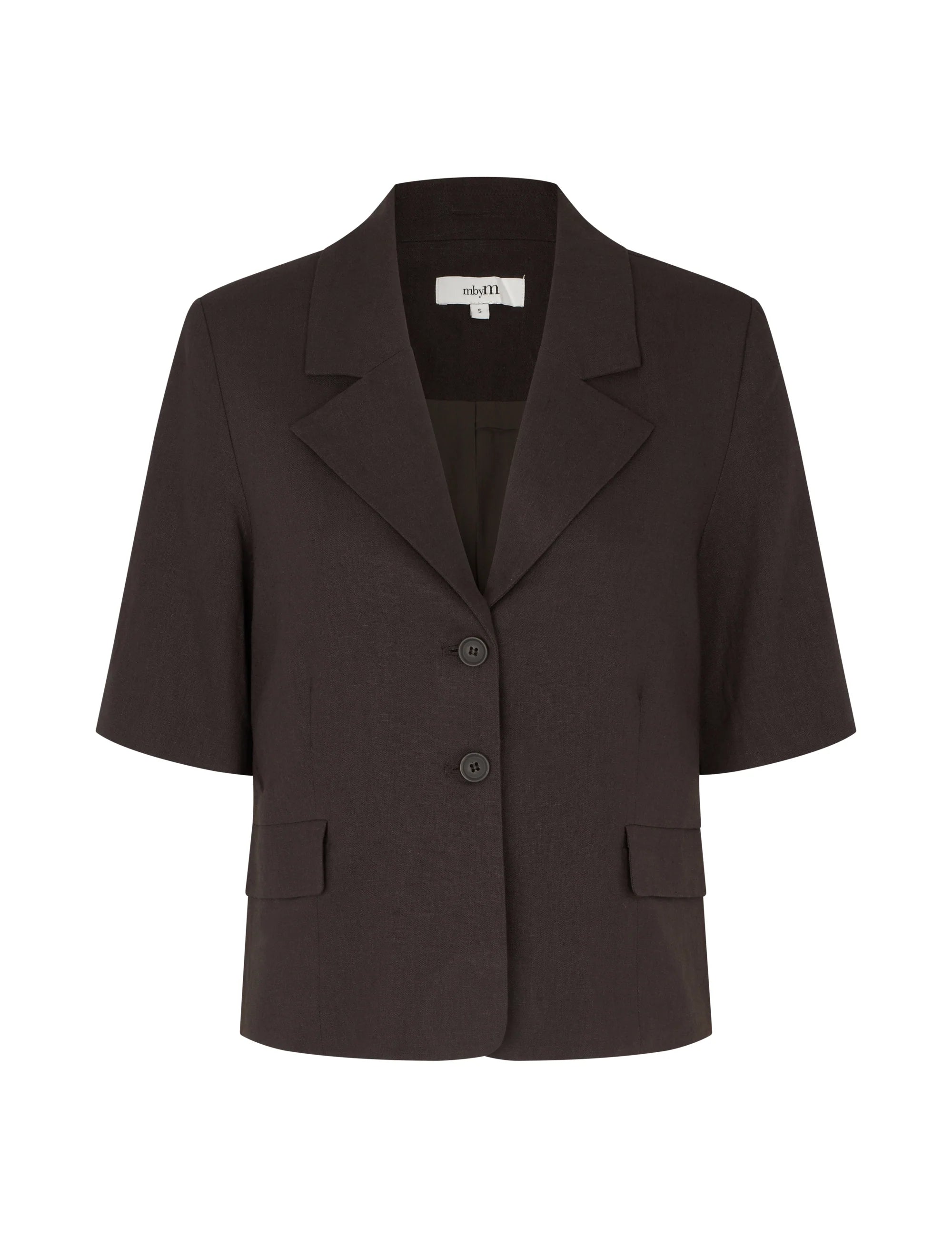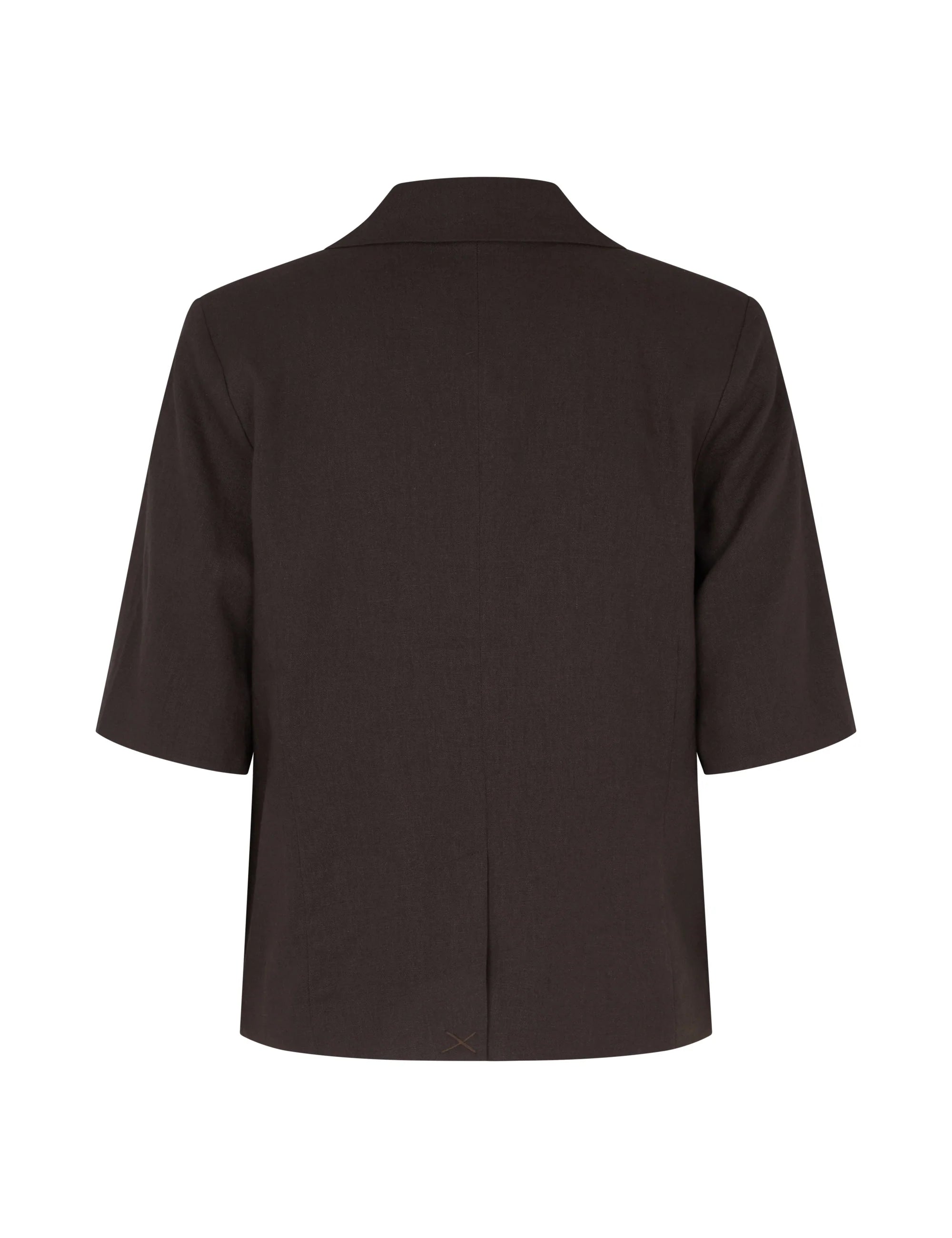 Morven-M Shawna Blazer fra MbyM er en blazer-topp kombinerer det beste fra klassisk tailoring og moderne, avslappet stil. Med sin rette, litt korte passform og korte ermer får du en fresh og anvendelig silhuett som fungerer like godt til hverdags som til mer pyntede anledninger. Den dype bruntonen gir et eksklusivt uttrykk, mens de rene linjene, slagkragen og knappelukkingen foran tilfører et tidløst preg. Style den med lyse bukser for en elegant kontrast, eller gå for et ton-i-ton antrekk for en mer sofistikert look. Et allsidig nøkkelplagg som løfter garderoben sesong etter sesong.