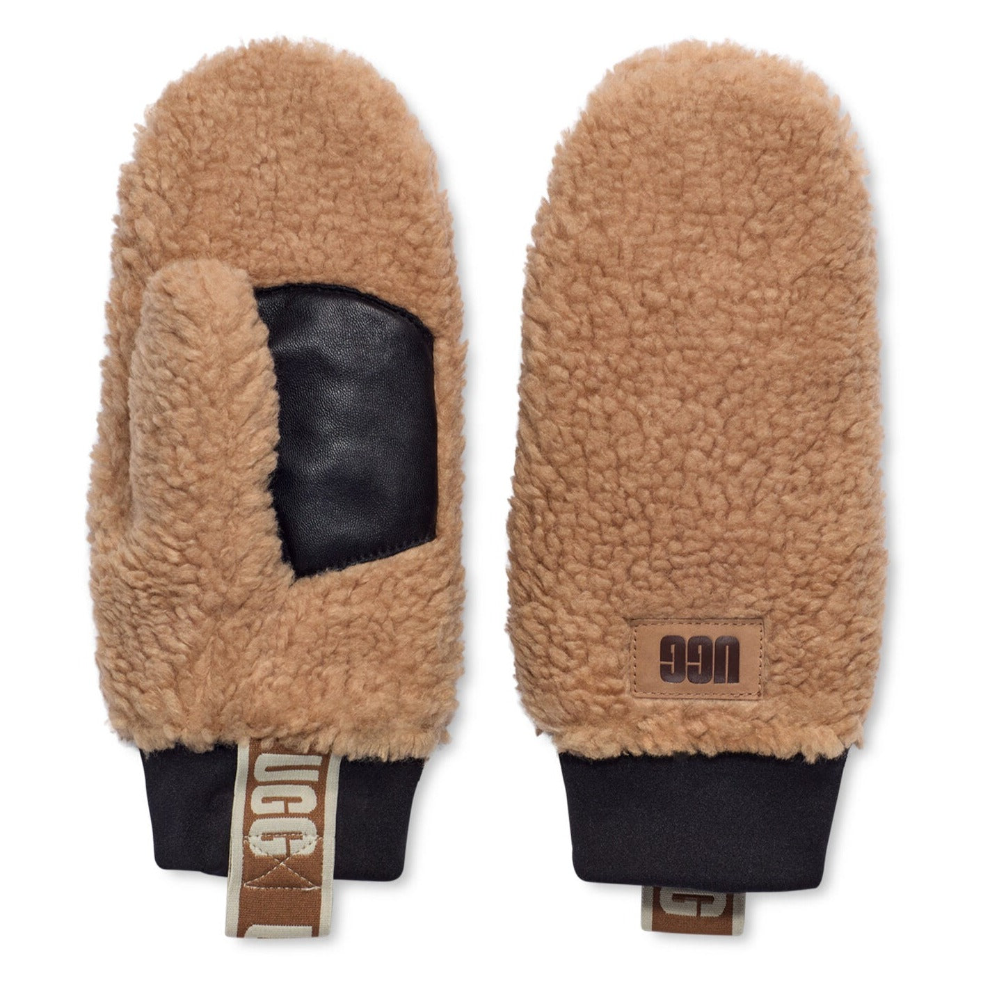 Varme og gode votter fra UGG, laget i deilig myk sherpa. Detaljert med skinn på innsiden, ribbekant rundt håndleddet og UGG-logobånd.