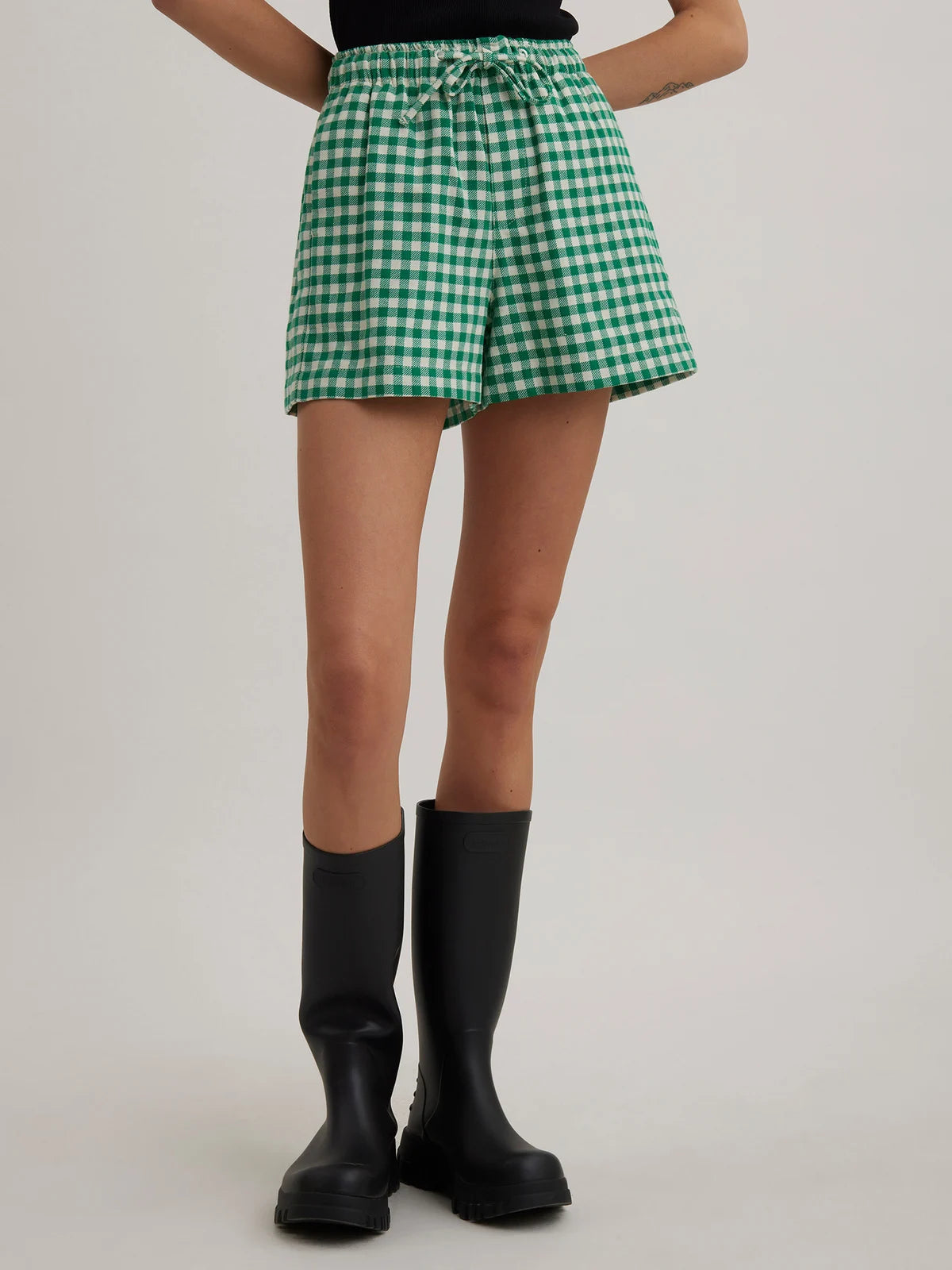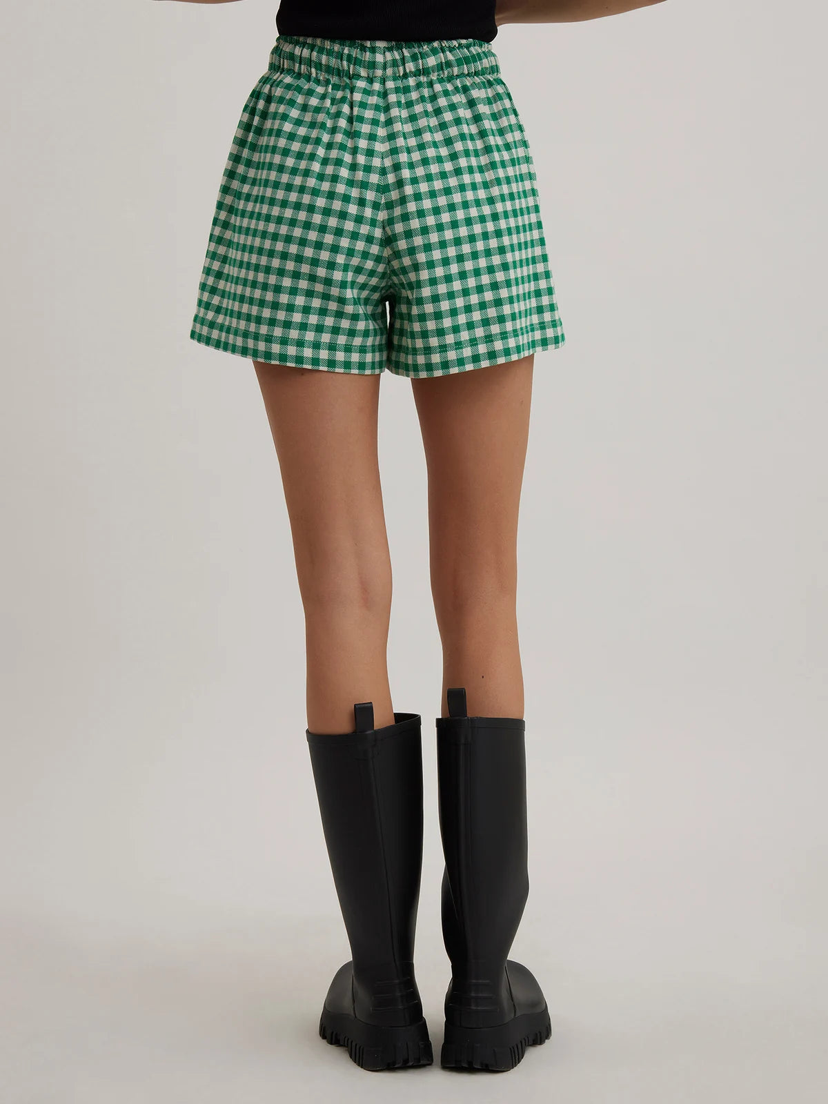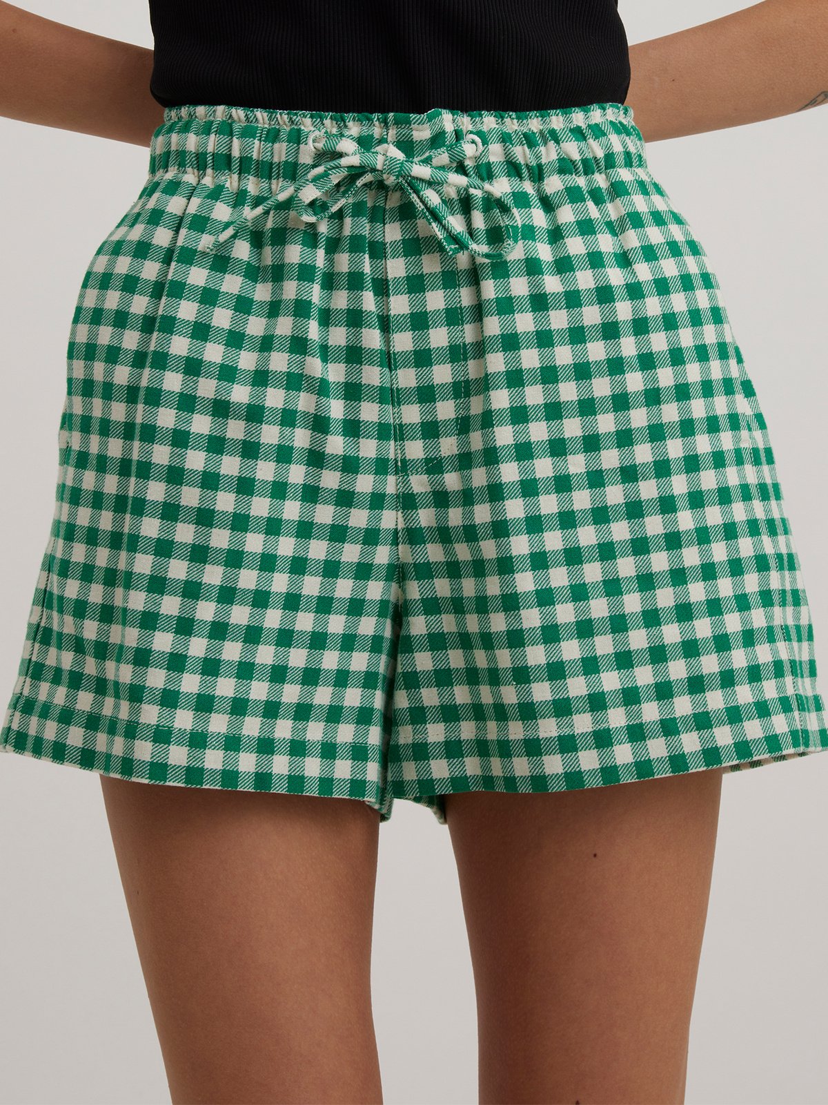 Rutete high waist shorts med lommer i sidene, falsk gylf og elastisk midjebånd, i en frisk og sommerlig grønnfarge!