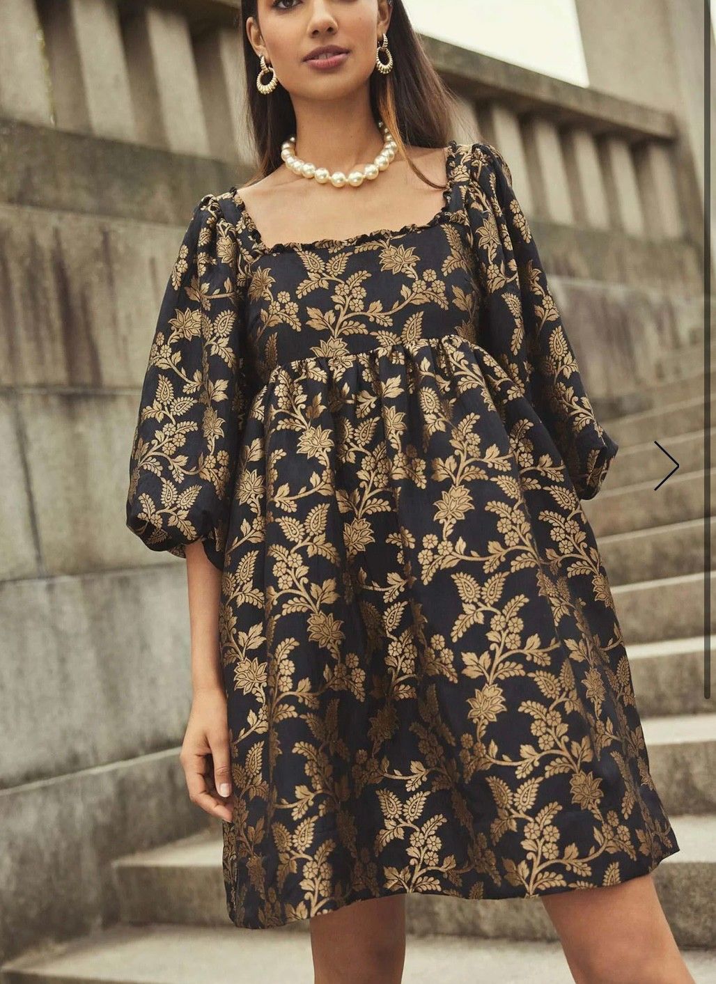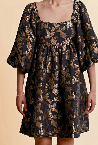 Brocade Babydoll Dress Black
