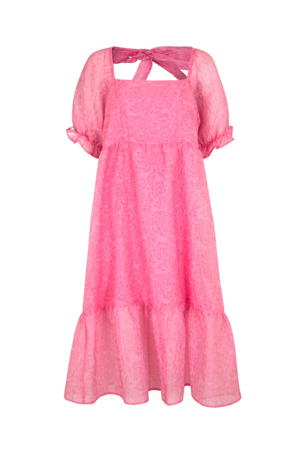 Estercras Dress fra Crās Copenhagen er den perfekt sommerkjole med mye volum. Kjolen har løs passform, firkantet hals, korte ermer og knyting i nakken.