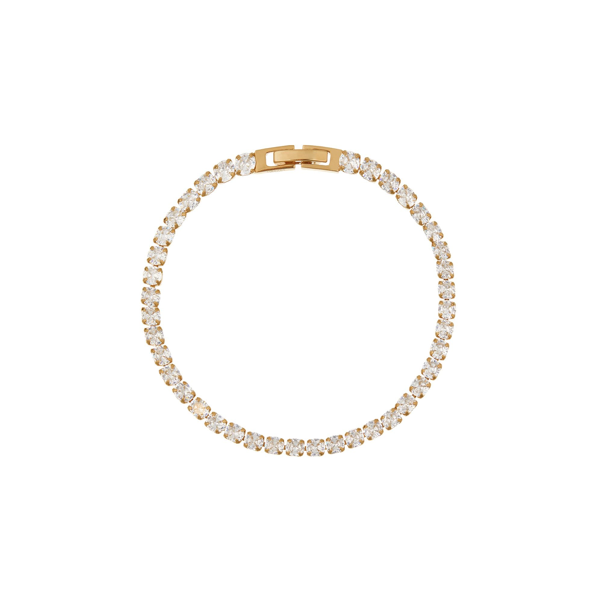Tennis Bracelet fra Orelia er en klassiker. En tynn rad med cubic zirconia cupchain-steiner, på et lett gullforgylt armbånd.