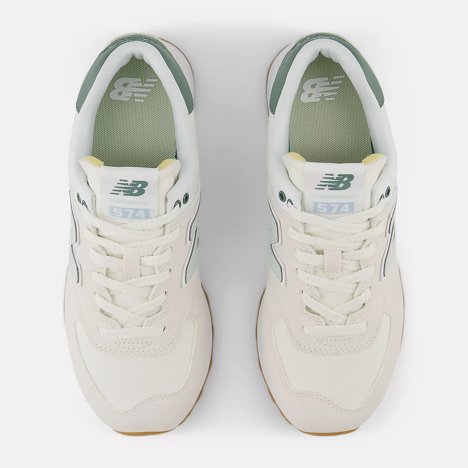 Med sin hybrid av vei- og terrengdesign, bygget på en bredere lest enn tidligere racingmodeller, kombinerer 574 funksjonalitet, komfort og slitestyrke på en unik måte. Denne allsidige klassikeren har blitt en garderobefavoritt verden over, kjent for sin ukompliserte, robuste og tidløse stil – en sko for alle, uansett anledning.