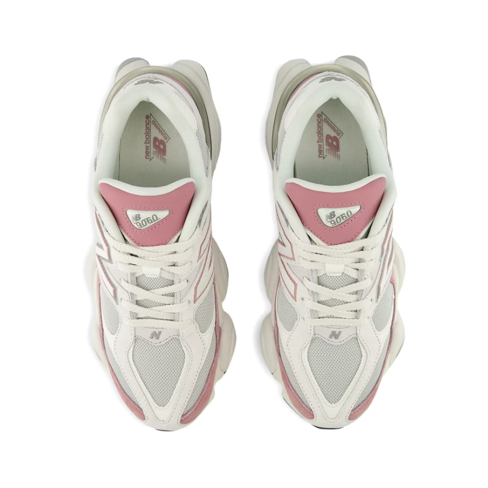 9060 Rosewood Reflection fra New Balance med et hvitt og rosa paneldesign, logodetaljer og klassisk snørelukking. En avslappet sneaker som passer til hverdagsbruk og fritid.
