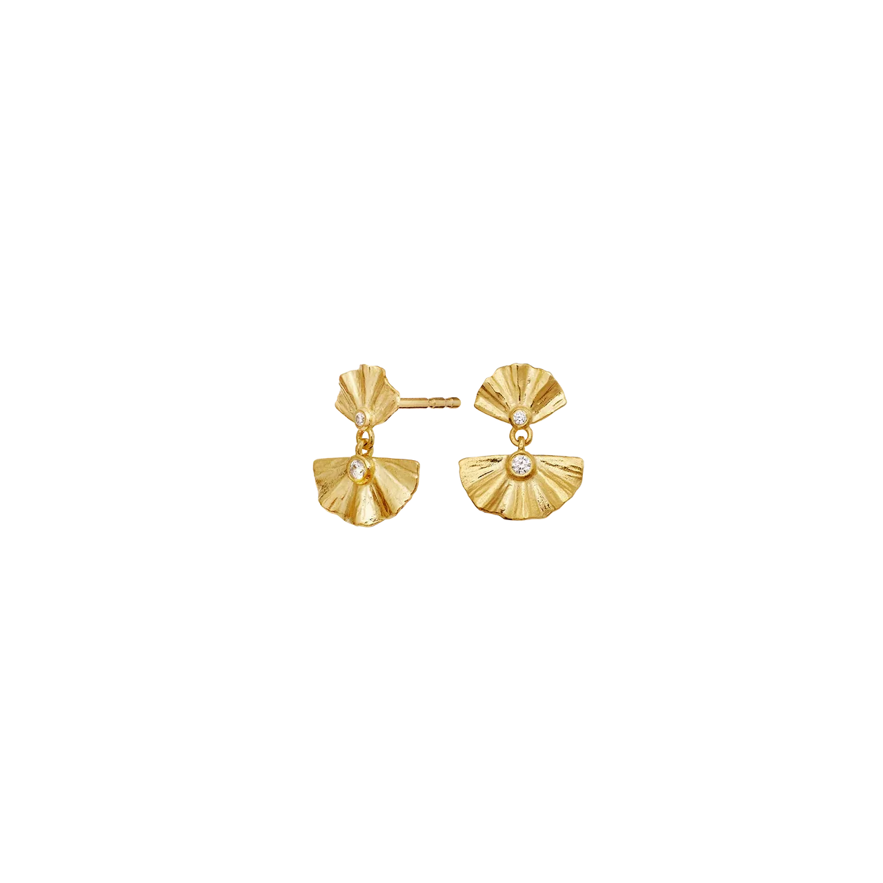 Maanestens Odile-øreringer fanger med sin mystiske skjønnhet. Elegante vifteformer og glitrende zirkoner utstråler tidløs eleganse og tiltrekning.