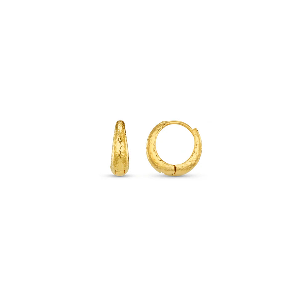 Molten Tapered Hoop Earrings fanger den flytende elegansen til smeltet metall med en skulpturell silhuett. De myke konturene sitter tett mot øret, og den polerte finishen reflekterer lys ved hver bevegelse. Perfekte til å løfte både hverdagsantrekk og kveldens styling.