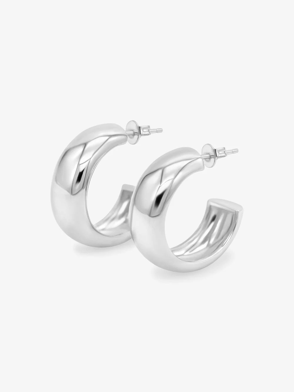 Bold Dome Hoops Silver fra Who Is She er et par elegante og iøynefallende hoops i rustfritt stål belagt med 925 sølv. De har en skinnende finish og et dristig uttrykk som løfter ethvert antrekk. Øreringene er vanntette og svetteresistente, noe som gjør dem perfekte til både hverdags og en aktiv livsstil, uten å falme. Med et tykt lag av ekte sølv får du holdbare og glansfulle hoops du kan bruke igjen og igjen.