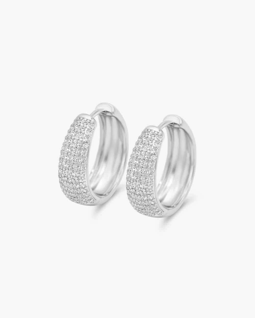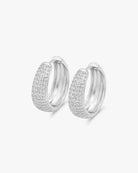 Øreringer i 925 sølvbelagt resirkulert messing med fremside dekket av zircon-steiner (5A kvalitet) og sikker lås i 925 sølv.
