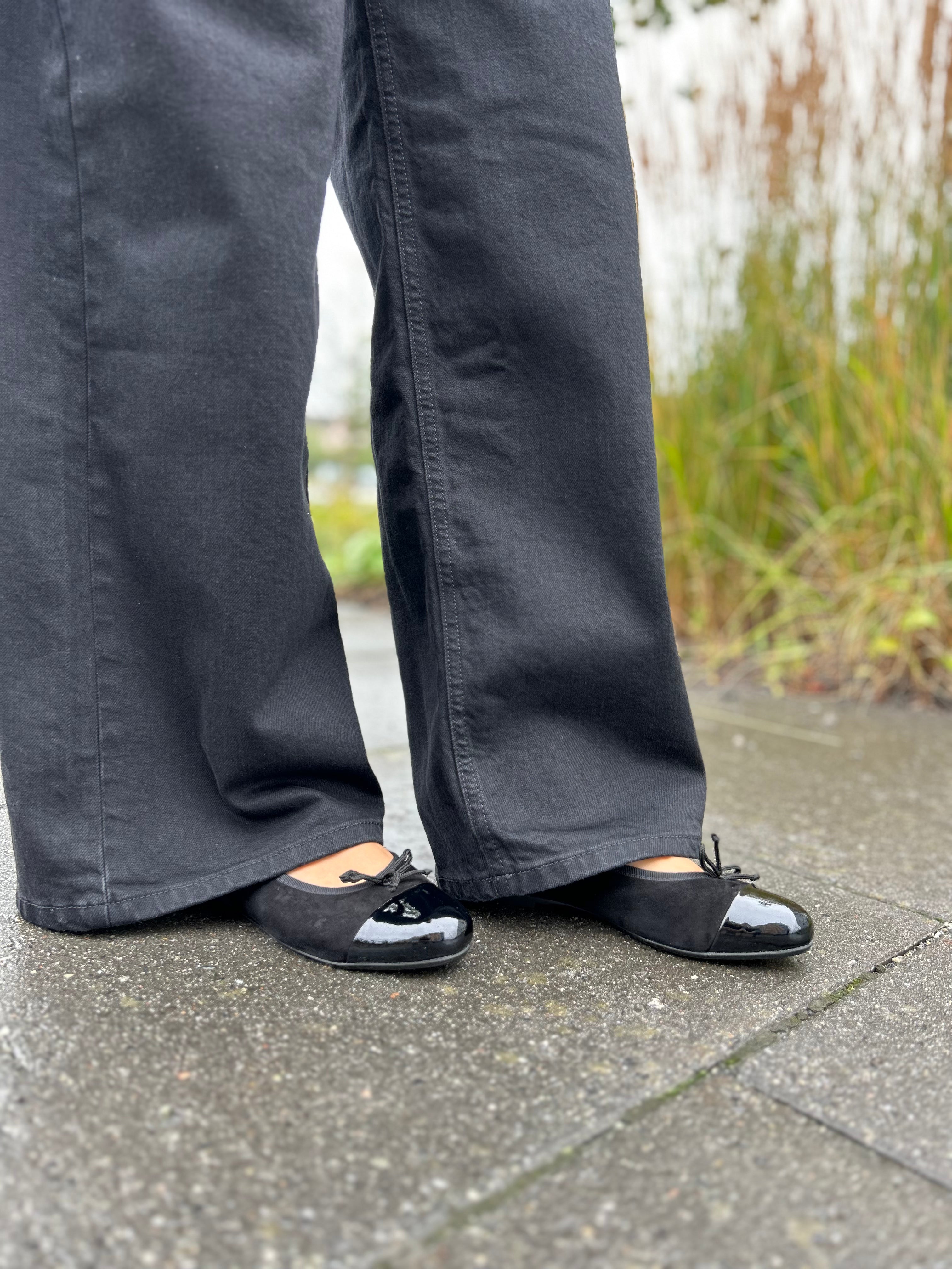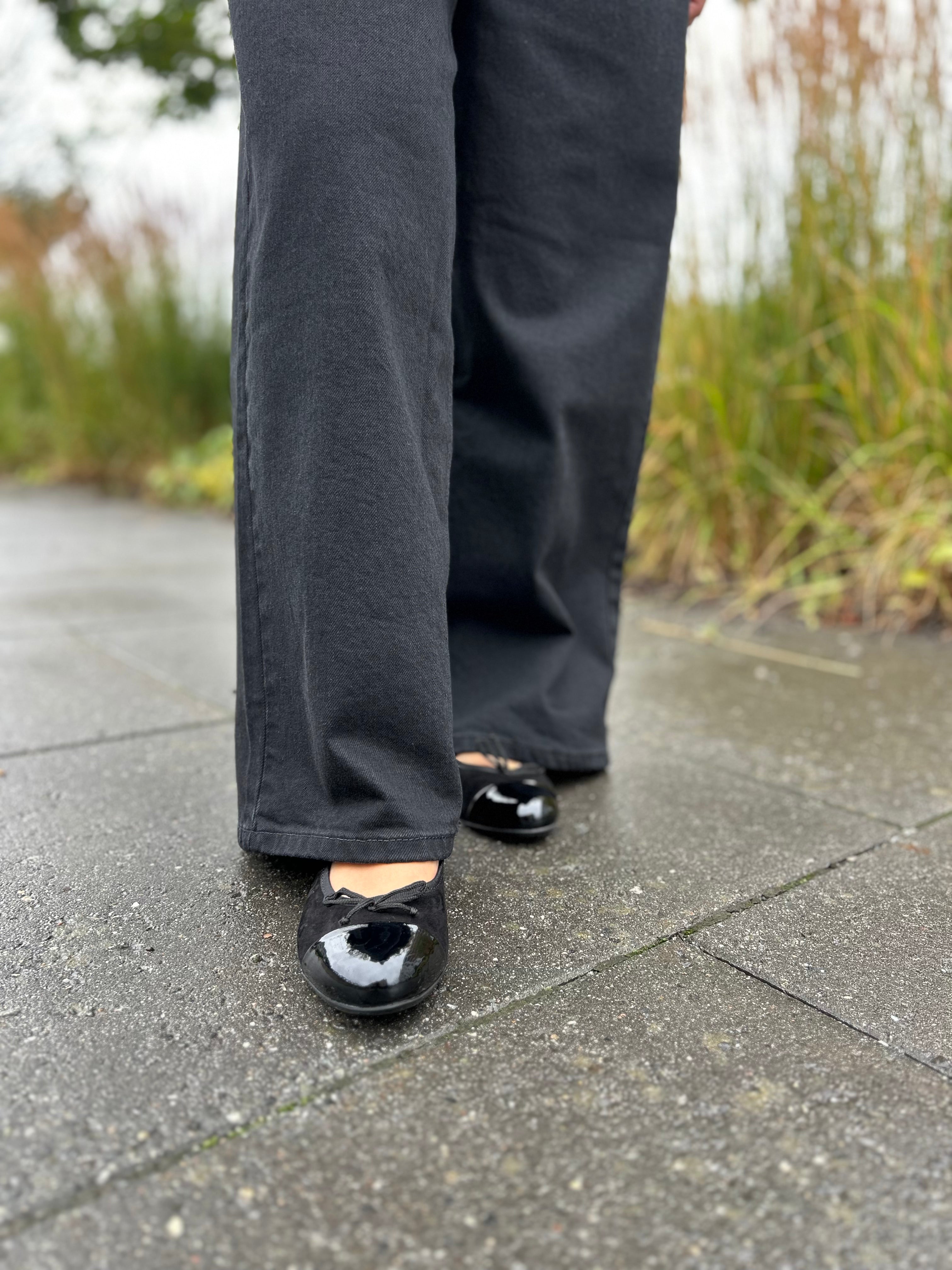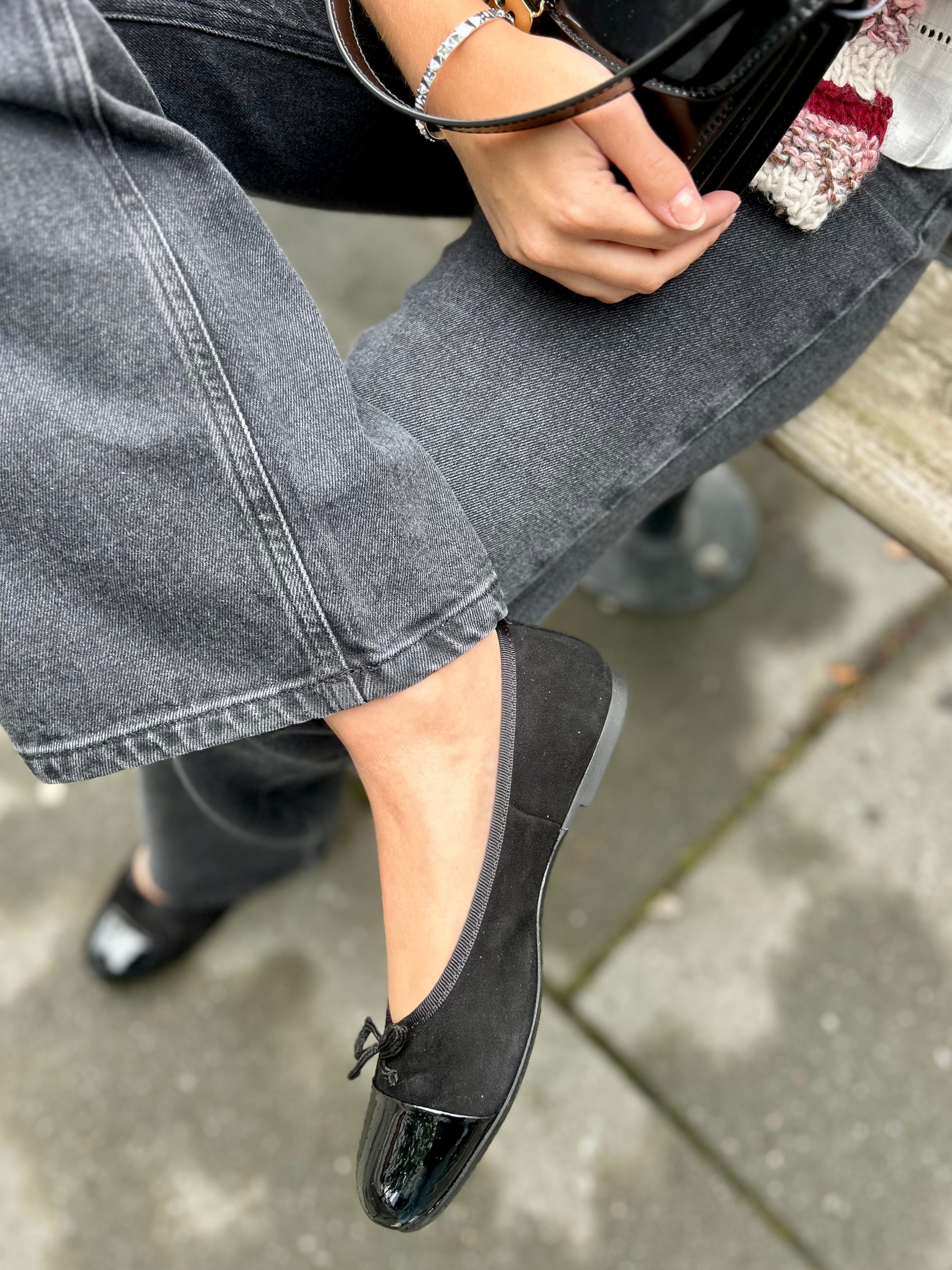 De fineste ballerinaene fra Pavement! Her i en vakker semsket og blant svart og med en fin liten sløyfe på toppen. De er smørmyke å ha på og sitter så godt på føttene! De er normale i størrelsene. Ballerinaen er håndlaget i Portugal, så detaljene er virkelig tatt vare på samtidig som de er av virkelig god kvalitet.