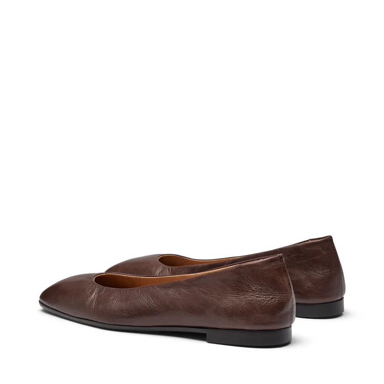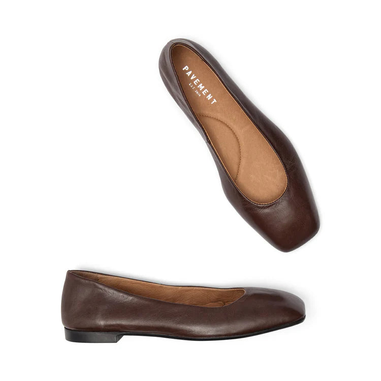 Katie fra Pavement er et par tidløse ballerinaer i mykt skinn som kombinerer minimalistisk design med høy komfort. Den flate gummisålen gir god støtte til hverdagsbruk, mens innersåle og fôr i skinn sørger for en luksuriøs følelse hele dagen. Med sin klassiske silhuett og dype brunfarge er de like fine til jeans som til kjoler. Passformen er normal, og skoene er håndlaget i Portugal med solid håndverk og kvalitet i hver detalj. Et must-have i enhver basegarderobe.