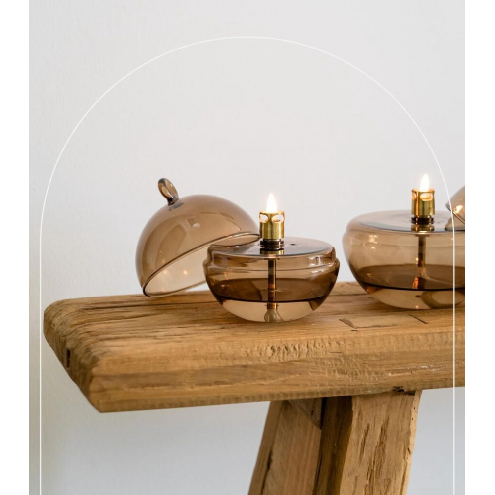 Round Cover Champagne Medium Brass er en delikat, liten oljelampe fra Peri. Denne stilige oljelampen i champagnefarge har avtagbart lokk, og kommer med den nye lysbrennerpatenten til Peri.