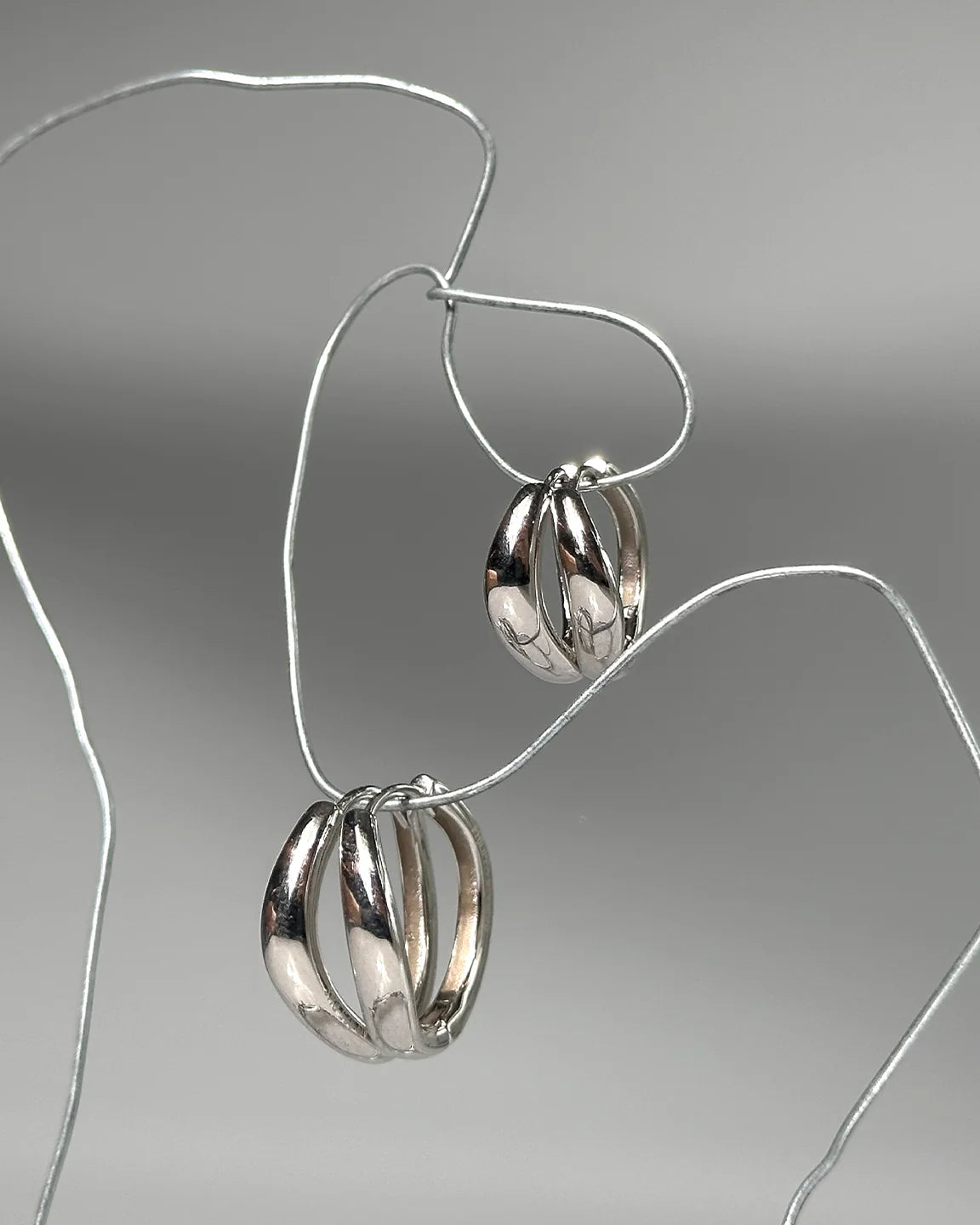 Wave Hoops Medium i sølv er et par tidløse øredobber med et rent og bølgende uttrykk. De ser flotte ut alene, men deres allsidige design gjør dem perfekte for å kombinere med andre øredobber.