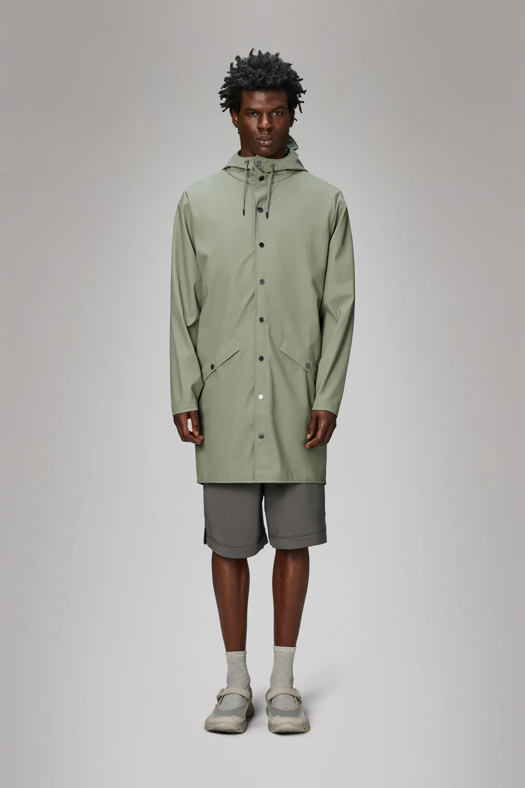 Long Jacket fra Rains er en tidløs unisex-regnjakke med et minimalistisk design i en lengre silhuett. Denne modellen er en forlenget versjon av Rains’ klassiske regnjakke og har knappestolpe med trykknapper, hette med innebygd brem og to sidelommer med trykknapplukking. Ermene har justerbare trykknapper for en tilpasset passform.