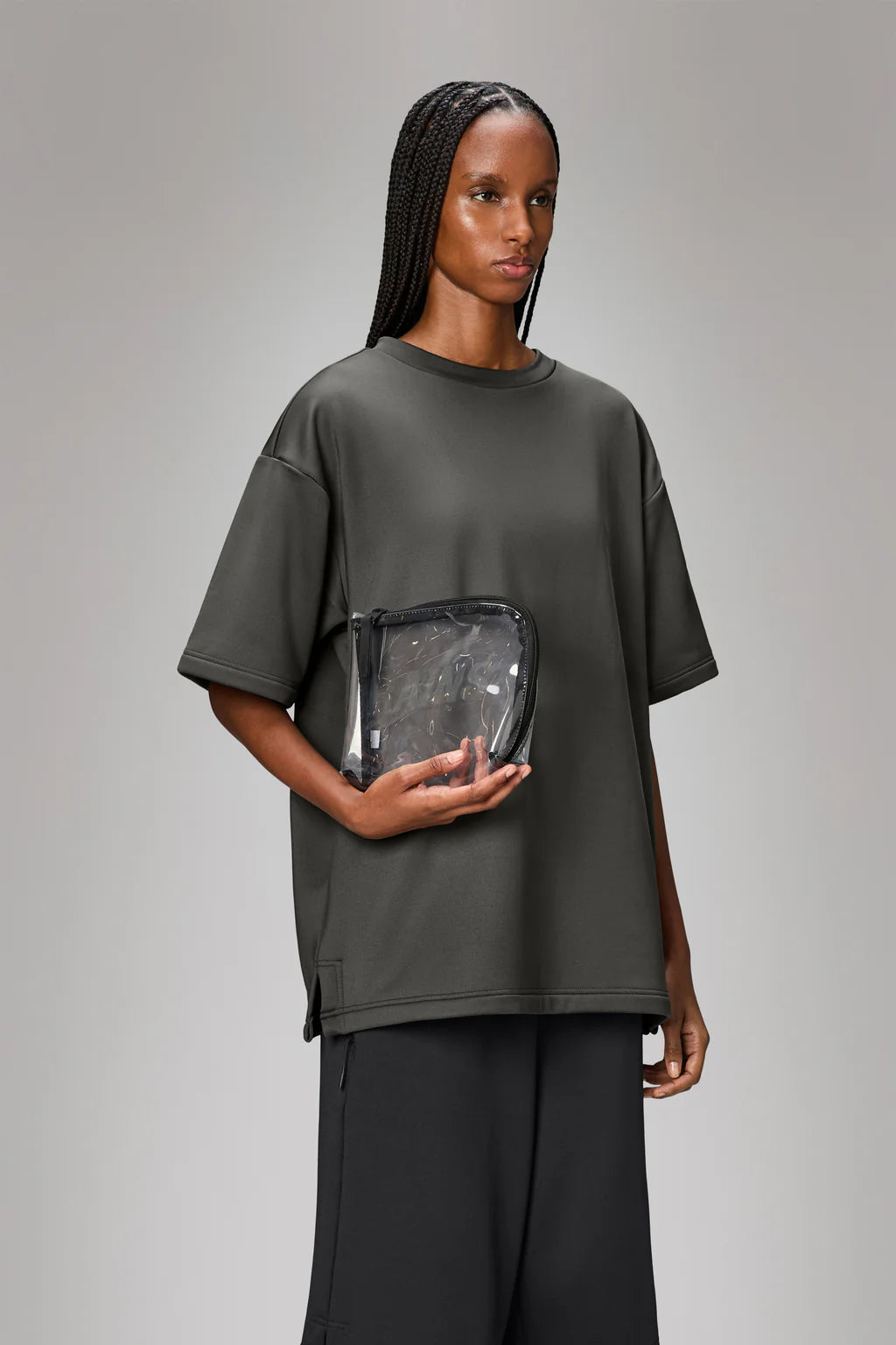 Texel Cosmetic Bag fra Rains er en kompakt og stilren toalettmappe designet for et liv på farten. Med en gjennomsiktig hovedlomme gir den enkel oversikt over innholdet og gjør sikkerhetskontrollen på flyplassen smidigere. Den slitesterke og vanntette TPU-konstruksjonen beskytter dine favorittprodukter, mens kontrastdetaljer og en gummiert glidelås gir et moderne uttrykk. Perfekt for reiser og daglig bruk!