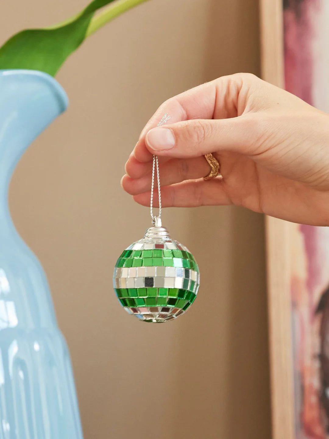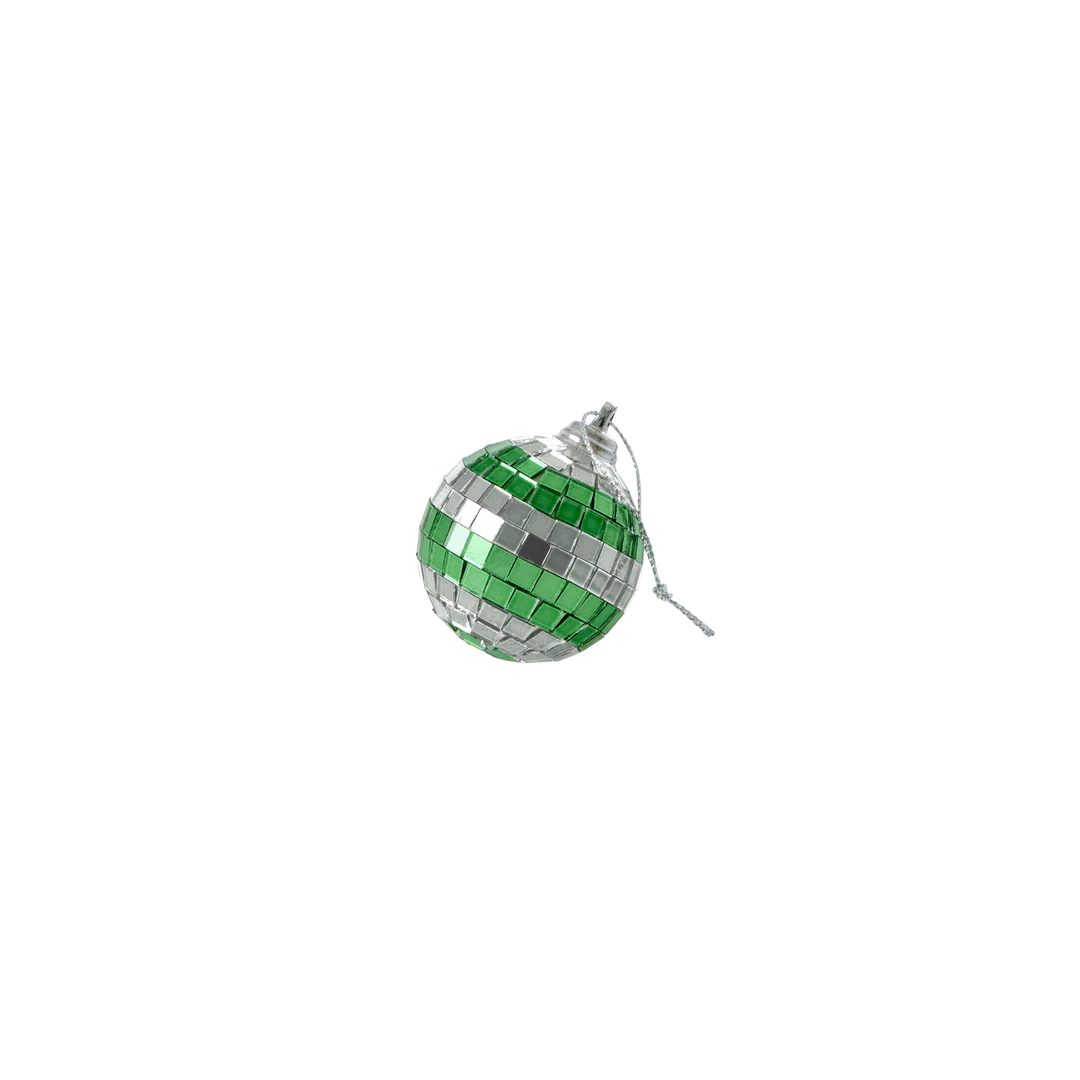 Ingenting sier "la oss feste" som en diskokule. Alt blir automatisk mye mer festlig med disse glitrende skjønnhetene hengende over hodet ditt eller liggende på bordet. Denne er grønn og sølvfarget, liten i størrelse og måler 5cm i diameter.