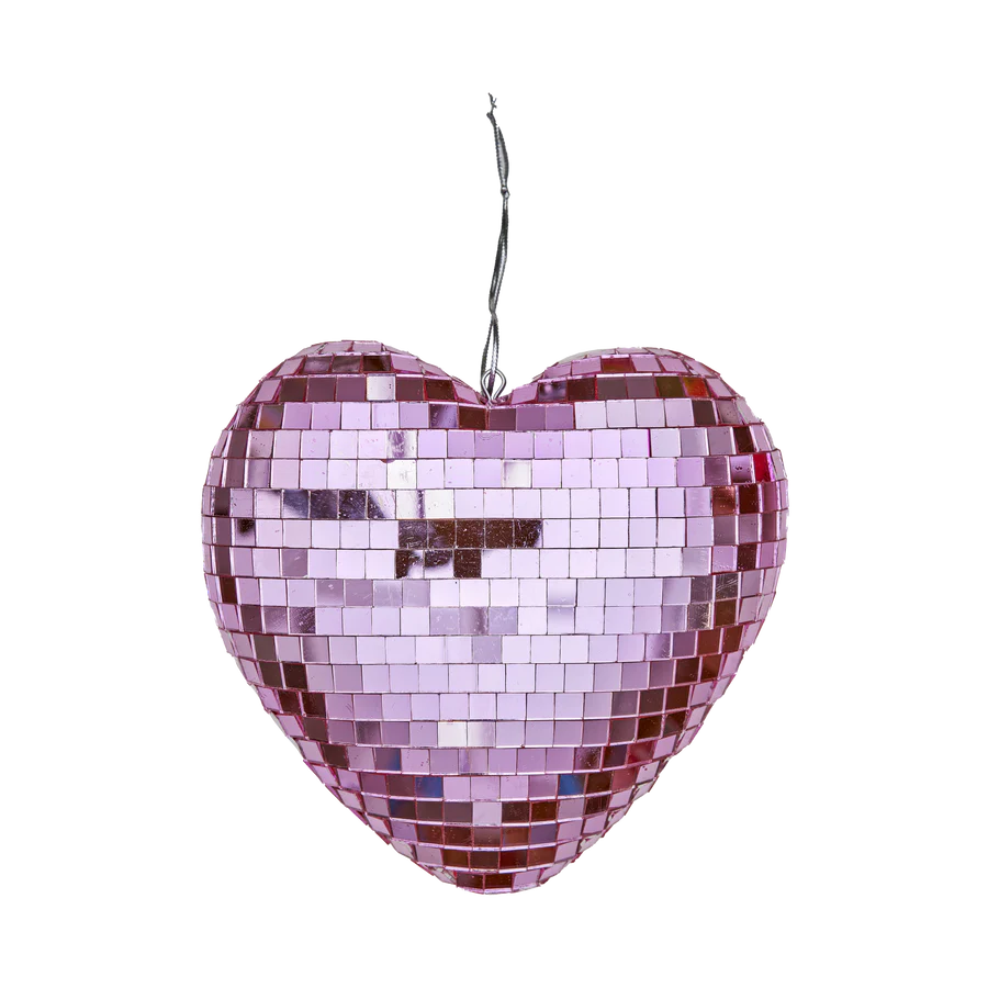 Ingenting sier "let's party" som Disco Ball Heart fra Rice. Alt blir automatisk mye mer festlig med glitrende juletrepynt hengende over hodet ditt. Discokulen har røde og rosa striper over hele sitt hjerteformede design. Den er liten i størrelse og måler 15,5 cm i lengde. Gi den en lett snurr, og se hvordan den sprer et regnbueskimmer av lys over rommet ditt! God jul.