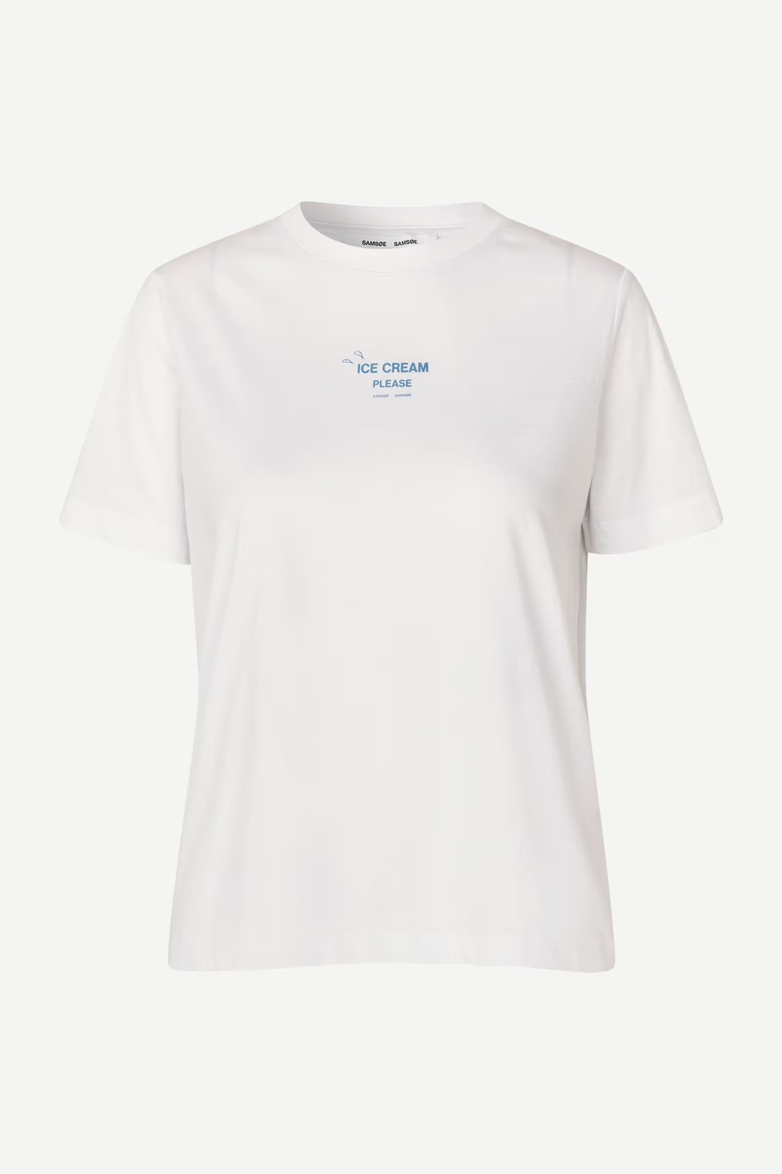 Sacamino SS T-shirt fra Samsøe er en kortermet T-skjorte med trykk og en klassisk, rett passform. Ribbestrikket rund hals gir en tidløs look som passer til det meste. Laget av 100 % økologisk bomull for en myk og behagelig følelse mot huden – og et mer bærekraftig valg.