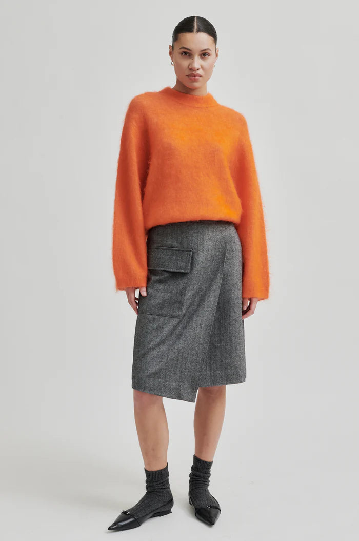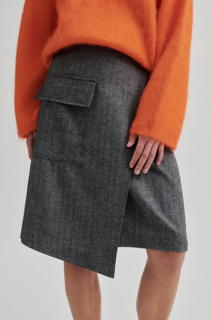 Waleria Skirt fra Second Female er et skjørt i myk ullblanding. Skjørtet har skjult glidelås i siden og skrå klaff i front. Detaljert med en lomme på den ene siden. Vanlig passform.