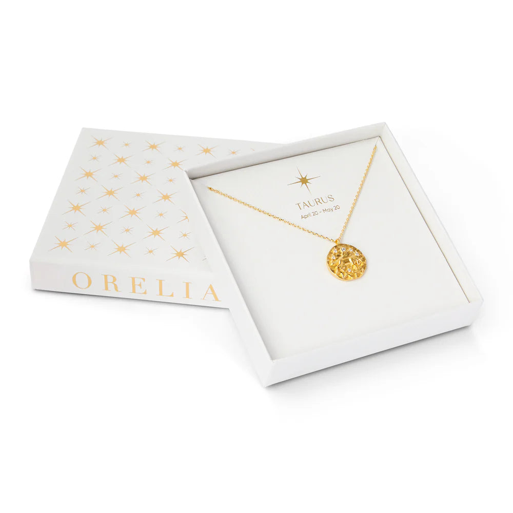 Oppdag Orelias Zodiac-kjeder. Et klassisk gullkjede med en rundt gravert plate med Tyren-symbolet og skinnende krystalldetaljer. 20. april - 20. mai. Den perfekte gaven til en du er glad i! Kommer med en fin smykkeboks.