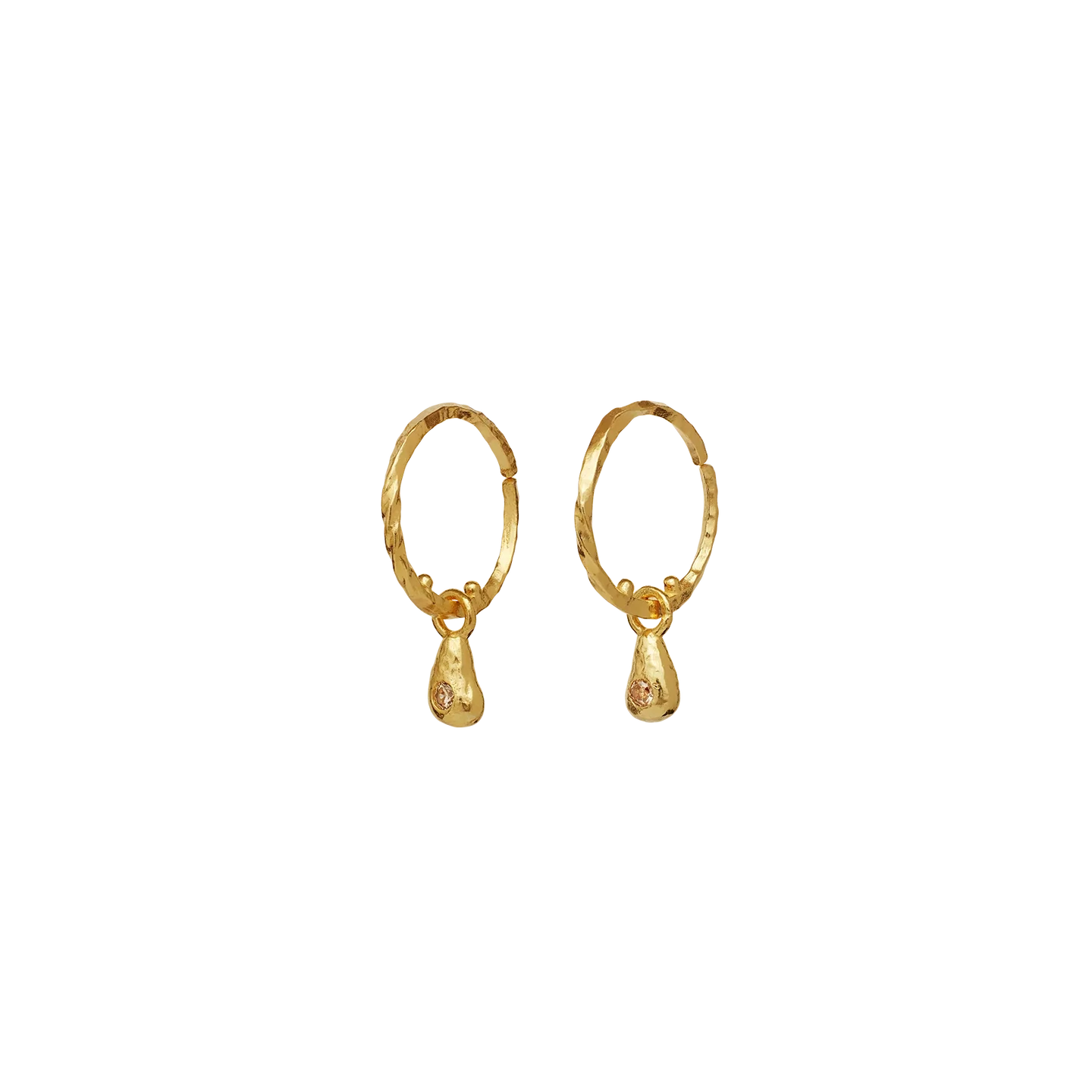 Millie Earrings er delikate øredobber fra Maanesten i resirkulert 925 sterling sølv, belagt med 18 karat gull og dekorert med champagnefargede zirkonia.