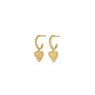 Rosalinde Earrings fra Maanesten. Øredobber med hjerteformede anheng som henger elegant fra en gyllen ring.