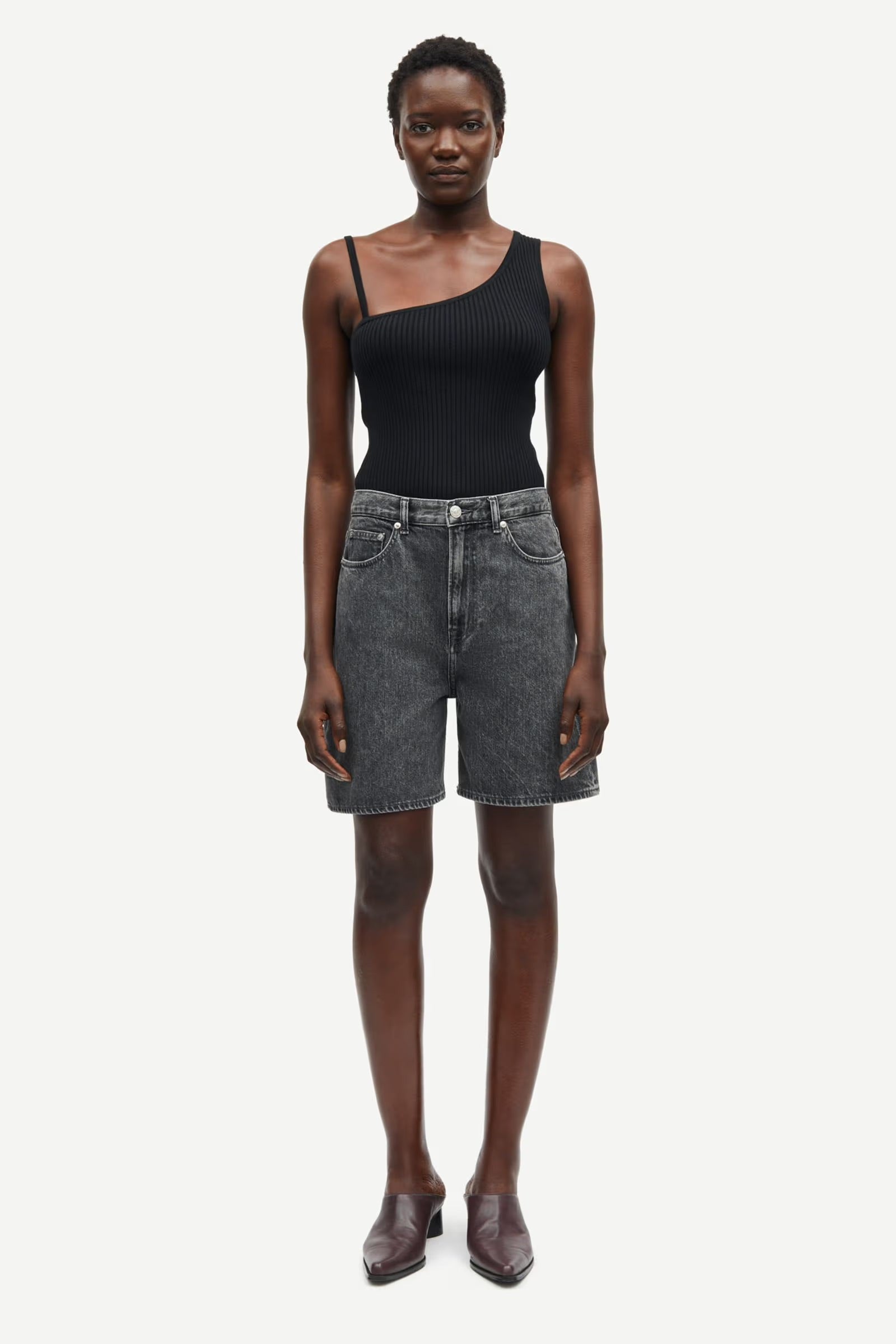 Sashelly Shorts Grey Cloud fra Samsøe er en denimshorts med løs passform og lav skrittlengde for en avslappet silhuett. Klassisk femlommersdesign med knapp og glidelås i front. Laget av en blanding av økologisk og resirkulert bomull – et bærekraftig valg for varme dager.