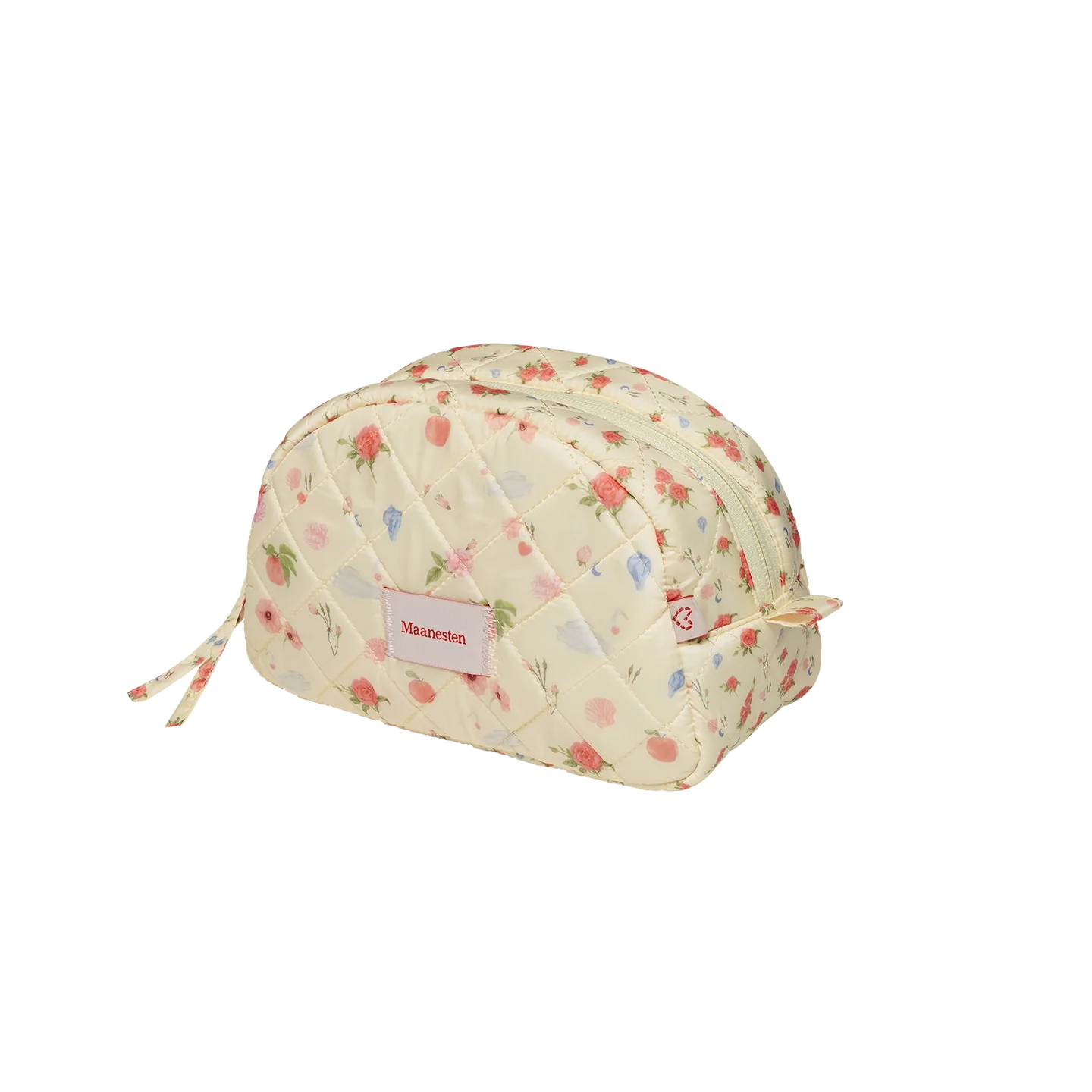 Bær det viktigste du trenger med et snev av eleganse i Maanestens sminkepung med rose- og skjellmønster. En hyllest til naturens skjønnhet og Afrodites tidløse eleganse.