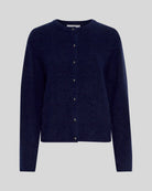 MSCHKellsey Alegria Cardigan Ocean Cavern fra MSCH Copenhagen. En strikket cardigan i en myk ullblanding med rund hals og små sølvknapper i front. Den feminine silhuetten og den delikate teksturen gjør den perfekt til både jeans og skjørt, og dette er et tidløst plagg du vil bruke igjen og igjen.