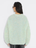 Mohair Cable Knit Crew Green Mix