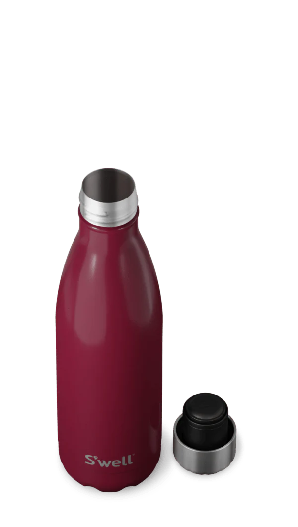 S'well Wild Cherry Bottle er en funksjonell, elegant og miljøvennlig termosflaske med doble vegger av rustfritt stål og et lite luftlag mellom som sikrer at den holder på innholdets temperatur over lengre tid.