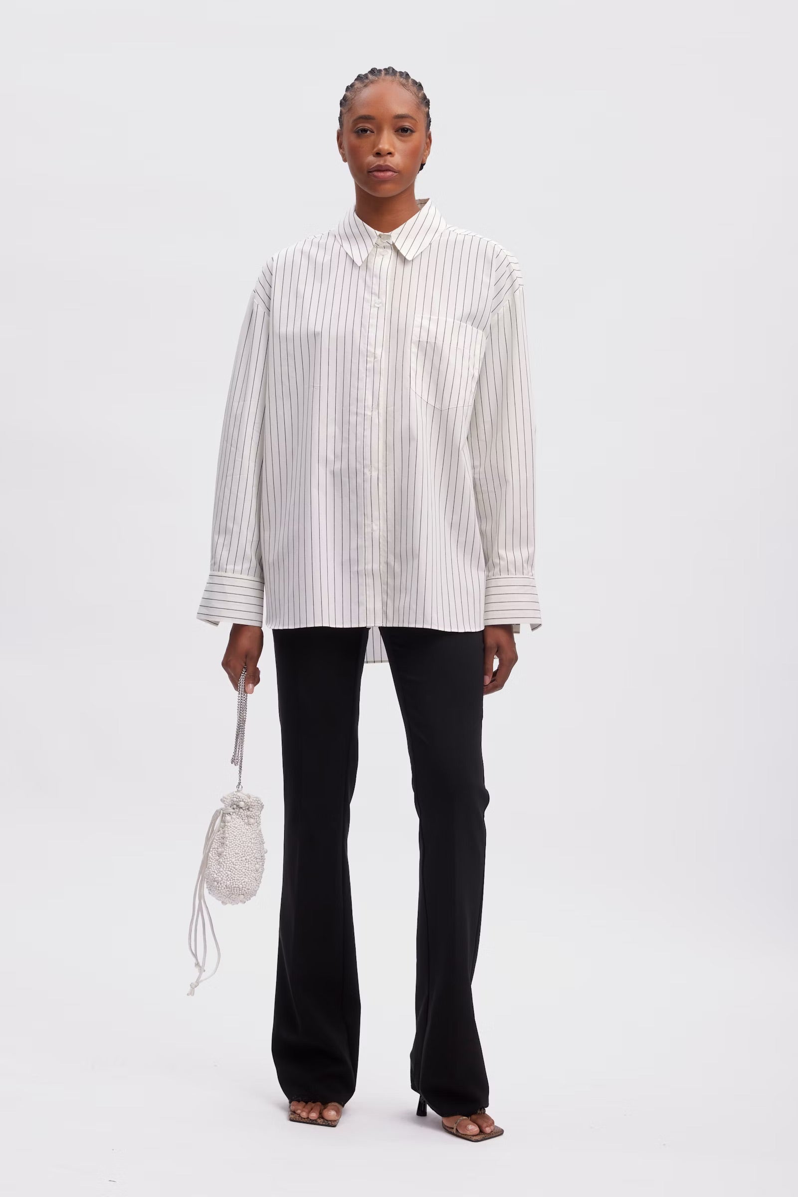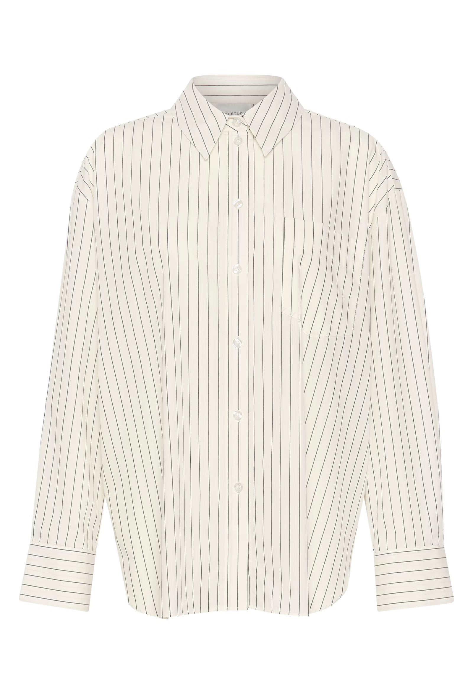 NoelleGZ Shirt fra Gestuz er en klassisk oversized skjorte i 100 % bomull. Skjorten har lange ermer, skjortekrage og knappelukking langs fronten, noe som gir et tidløst og sofistikert uttrykk. Den løstsittende passformen sikrer komfort og en avslappet look, perfekt for både hverdagsbruk og mer formelle anledninger.