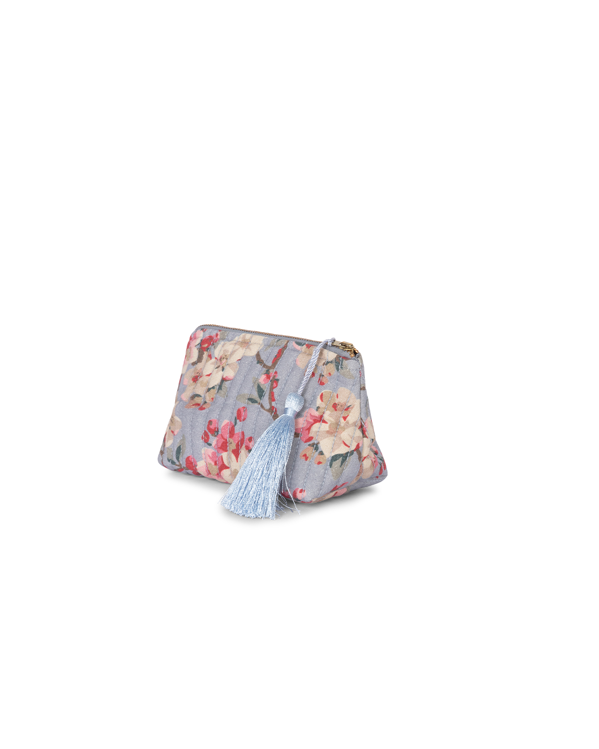 Makeup Bag fra byTiMo er en elegant og praktisk toalettmappe laget av 100 % bomull. Den har vakre quiltede detaljer og den trekantede formen gjør den perfekt til å oppbevare sminke og små tilbehør samlet på ett sted. Vesken er helfôret, lukkes med glidelås og er elegant ferdigstilt med en duskdetalj, designet for å være med deg overalt.