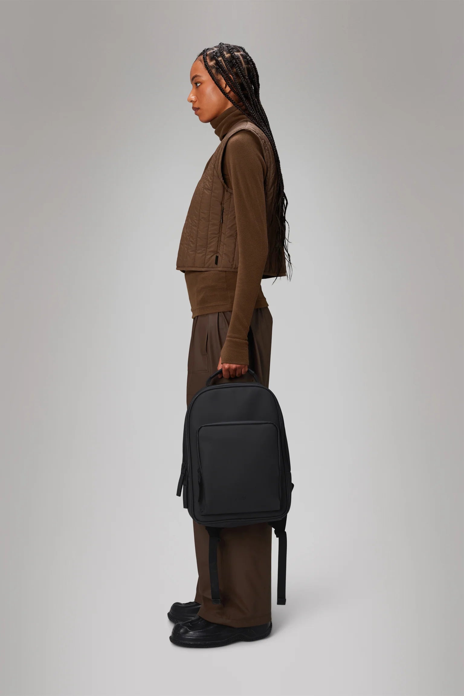 Book Daypack er en minimal silhuett i campus-klare proporsjoner. Designet er preget av sin buede topp og skarpe base.