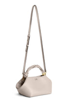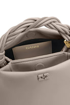 Bou Bag Small fra Ganni er en ikonisk veske med et tidløst design. Laget i resirkulert skinn, skiller vesken seg ut med sin unike, hexagonale fasong. Ganni Bou Bag Small er utstyrt med et tvunnet håndtak med gyldne detaljer, samt en lengre, avtakbar og justerbar stropp. Den har to hovedrom, en praktisk innvendig magnetlukking og en kortlomme for enkel organisering.