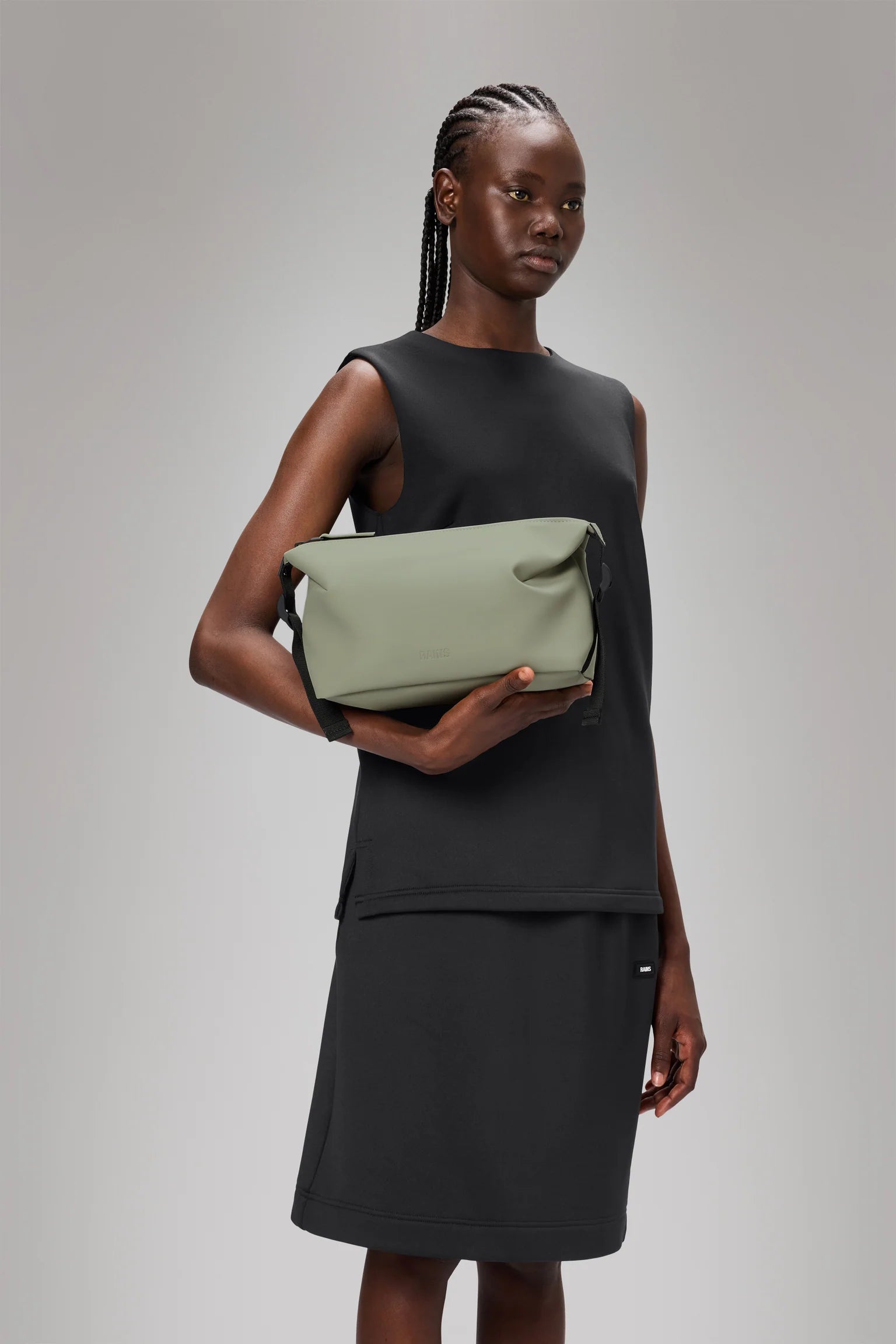 Hilo Wash Bag W3 fra Rains er en toalettmappe og det minste designet i Weekend Bag-serien. Toalettmappen har et minimalistisk design med sidemonterte spenner som kan justeres for å komprimere vesken, og et romslig hovedrom med god plass. Den er vanntett mot lett regn, med en vannsøyle på 8000 mm.