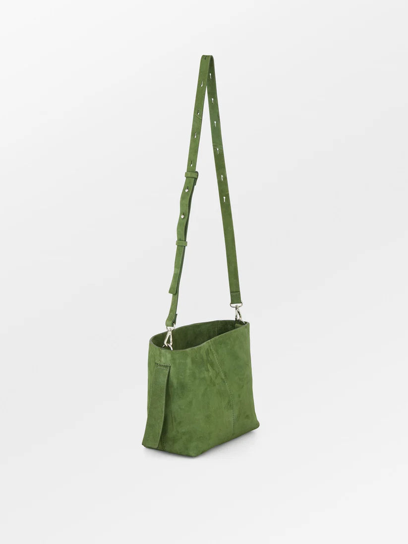 Suede Fraya Small Bag er en romslig veske i 100 % semsket skinn fra Beck Söndergaard. Den lukkes med magnet og har fire rom samt en praktisk innerlomme med glidelås. Med målene 24 x 22 cm rommer den det du trenger i hverdagen, og den justerbare skulderstroppen gjør at du kan bruke den både som crossbody og skulderveske. Stroppen ligger i innerlommen og kan også tas av.