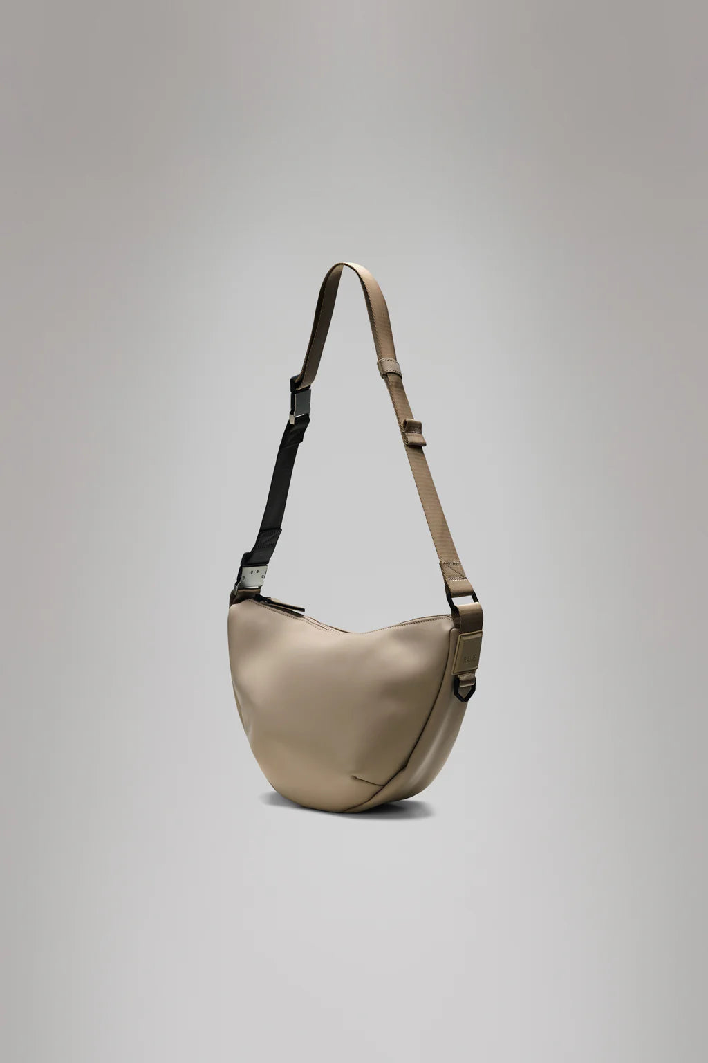 Den justerbare skulderremmen i webbing har en kontrastfarget innsats som kan tas av for et renere uttrykk – eller beholdes for en liten fargedetalj. Børstet sølvfarget hardware og silikondetaljer gir et eksklusivt preg til den myke formen. Laget i Rains’ signatur-PU-materiale med myk innside, som kombinerer et avslappet uttrykk med slitestyrke og velkjent vannavstøtende egenskaper.
