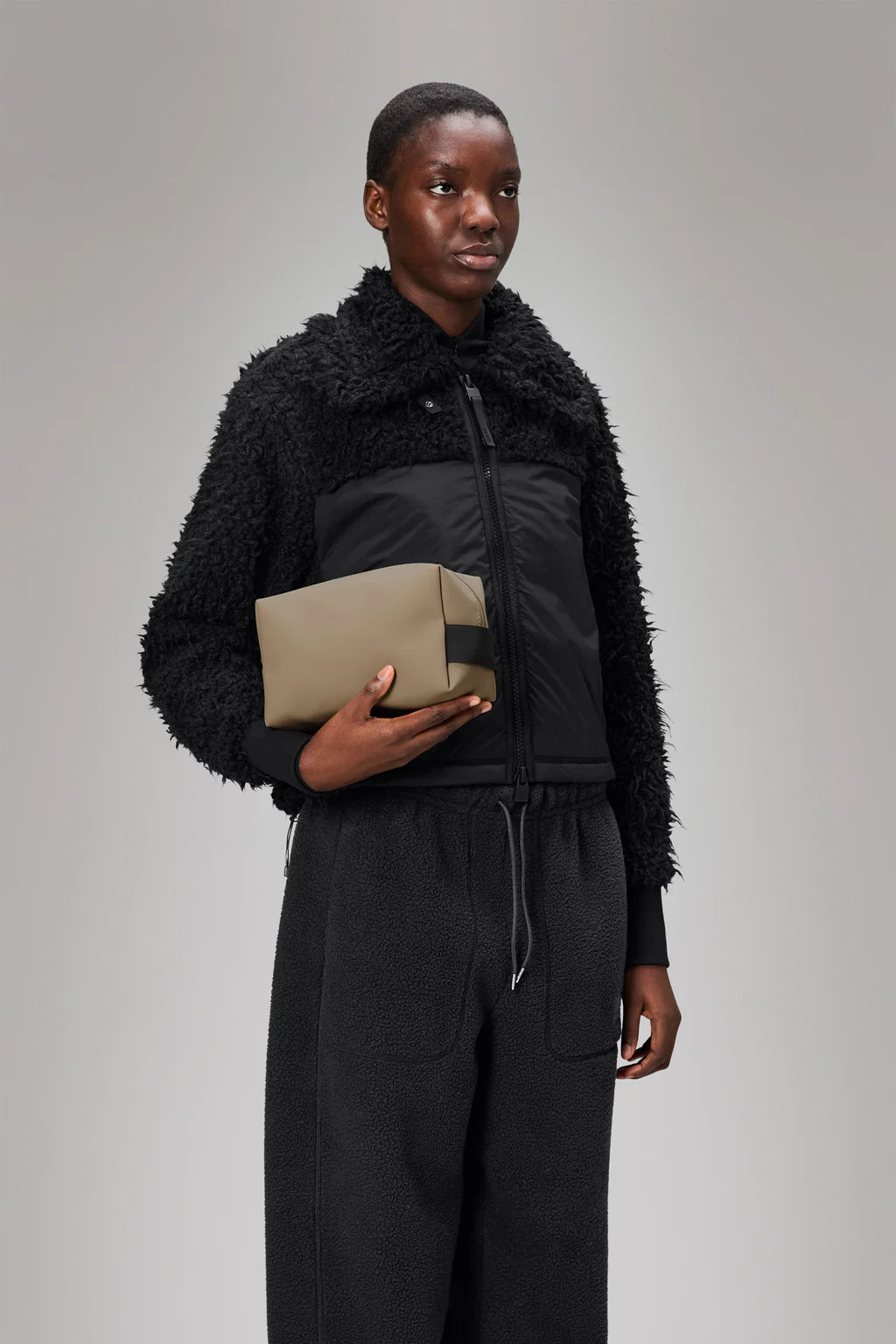 Wash Bag Small fra Rains er en minimalistisk toalettmappe med ett enkelt rom som er stort nok for dine viktigste tilbehør og toalettsaker. Toalettmappen har en belagt glidelås og bærehåndtak i siden. Den er vanntett, og perfekt for baderomsbenken, med en vannsøyle på 8000 mm.