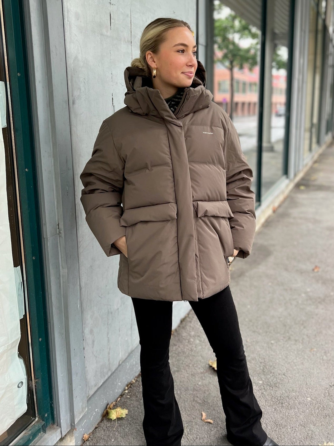 Den har en oversized passform som gir et moderne og avslappet uttrykk. Ønsker du en mer klassisk silhuett, anbefaler vi å gå ned én størrelse. Jakken er vattert med RDS-sertifisert dun (Responsible Down Standard), og har en imponerende fill power på 680, som gir utmerket isolasjon og varme gjennom hele sesongen.