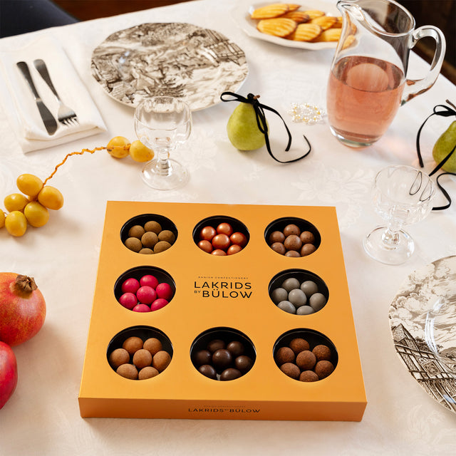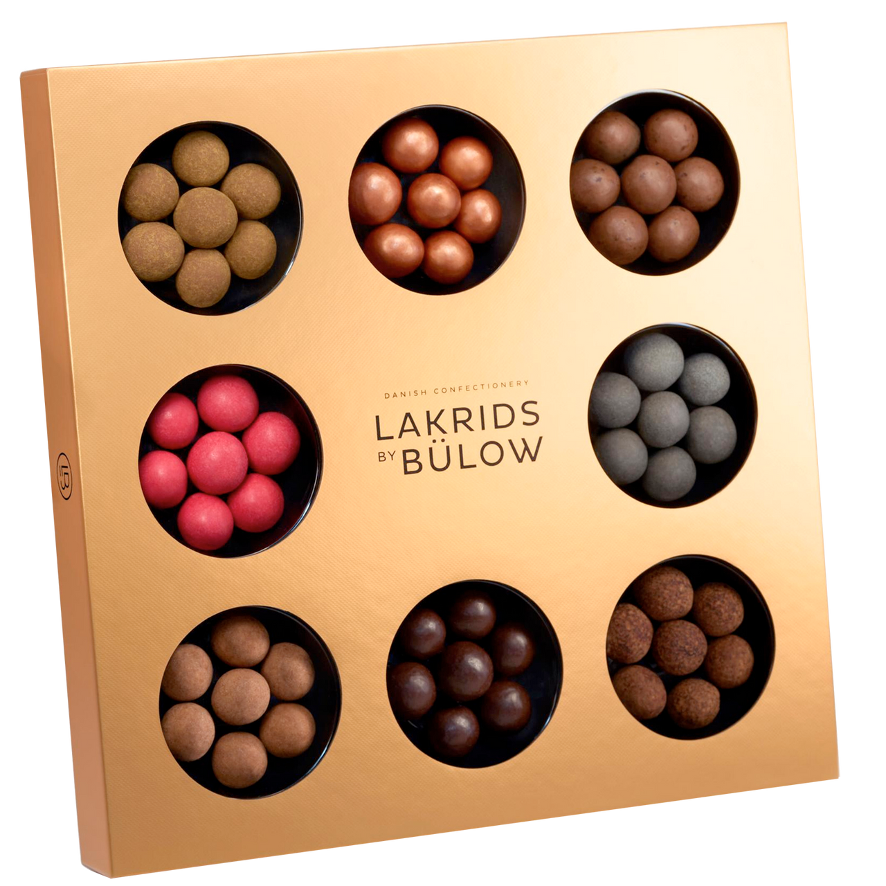 Winter Selection Box fra Lakris by Bülow byr på mange smakfulle fristelser. Esken inneholder både populære smaksfavoritter som deres klassikere og sesongfavoritter: The Original, Coffee Kieni, Salt & Caramel, Salmiak, Dark & Sea Salt, Double Chocolate, Classic Caramel og Crispy Rasberry.