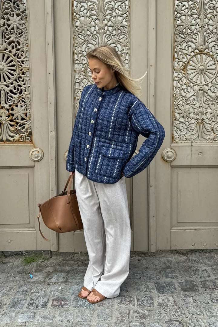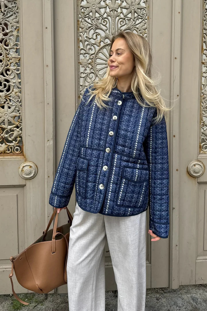 EmmyIC Quilted Jacket er en quilted jakke med med oversized passform og blomstertrykk. Jakken har to lommer i front og knapper foran.