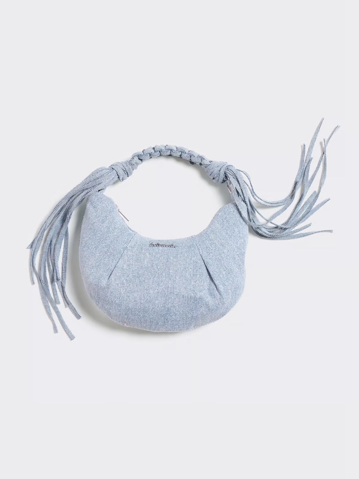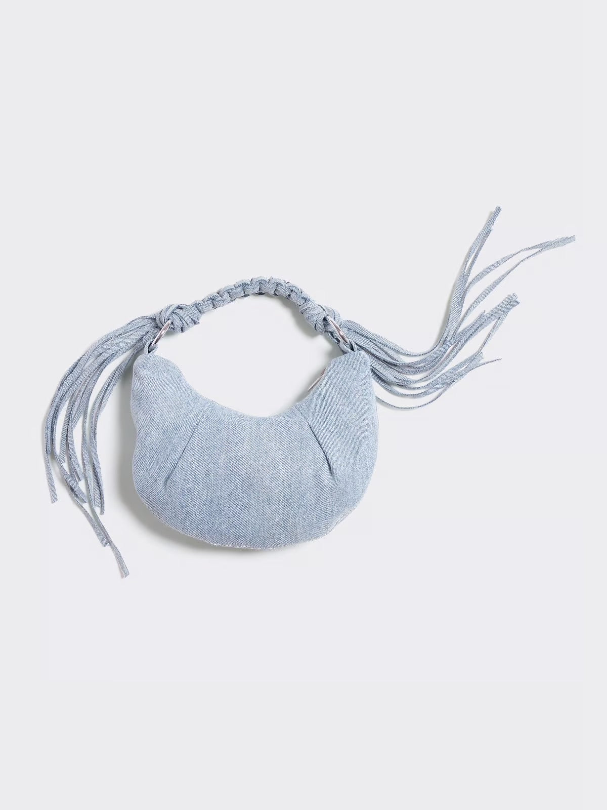 Cocoon Denim Micro Bag Lt. Blue Mix fra Holzweiler er den minste versjonen av kundefavoritten Cocoon! Vesken har et mykt, avslappet design med subtile rynkedetaljer. Den kommer med både en skulderstropp og en flettet crossbody-stropp med dekorative dusker. Glidelåslukking på toppen holder eiendelene dine trygge.