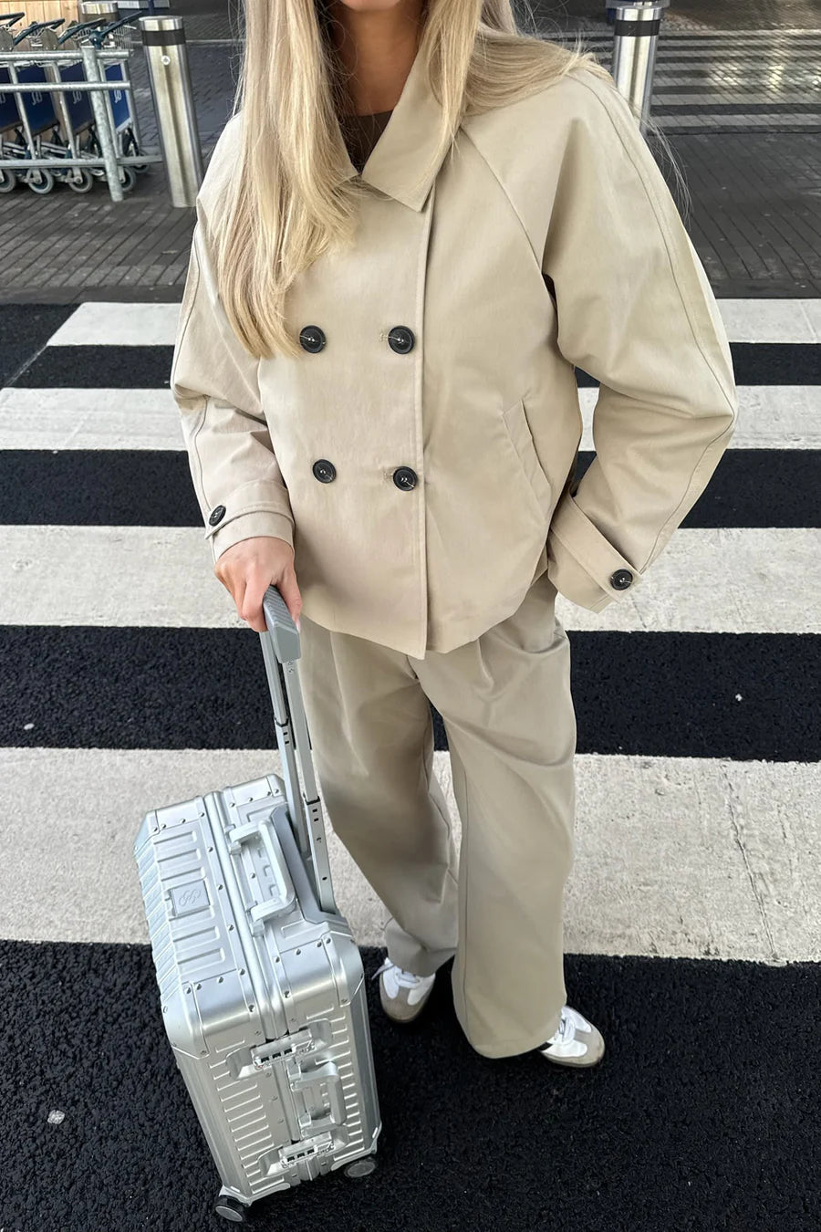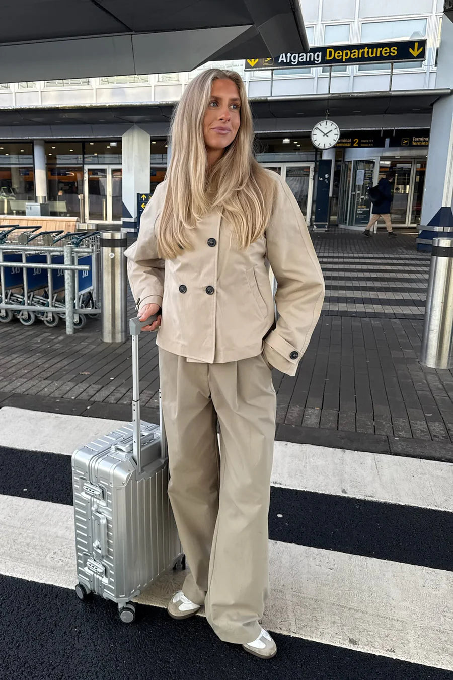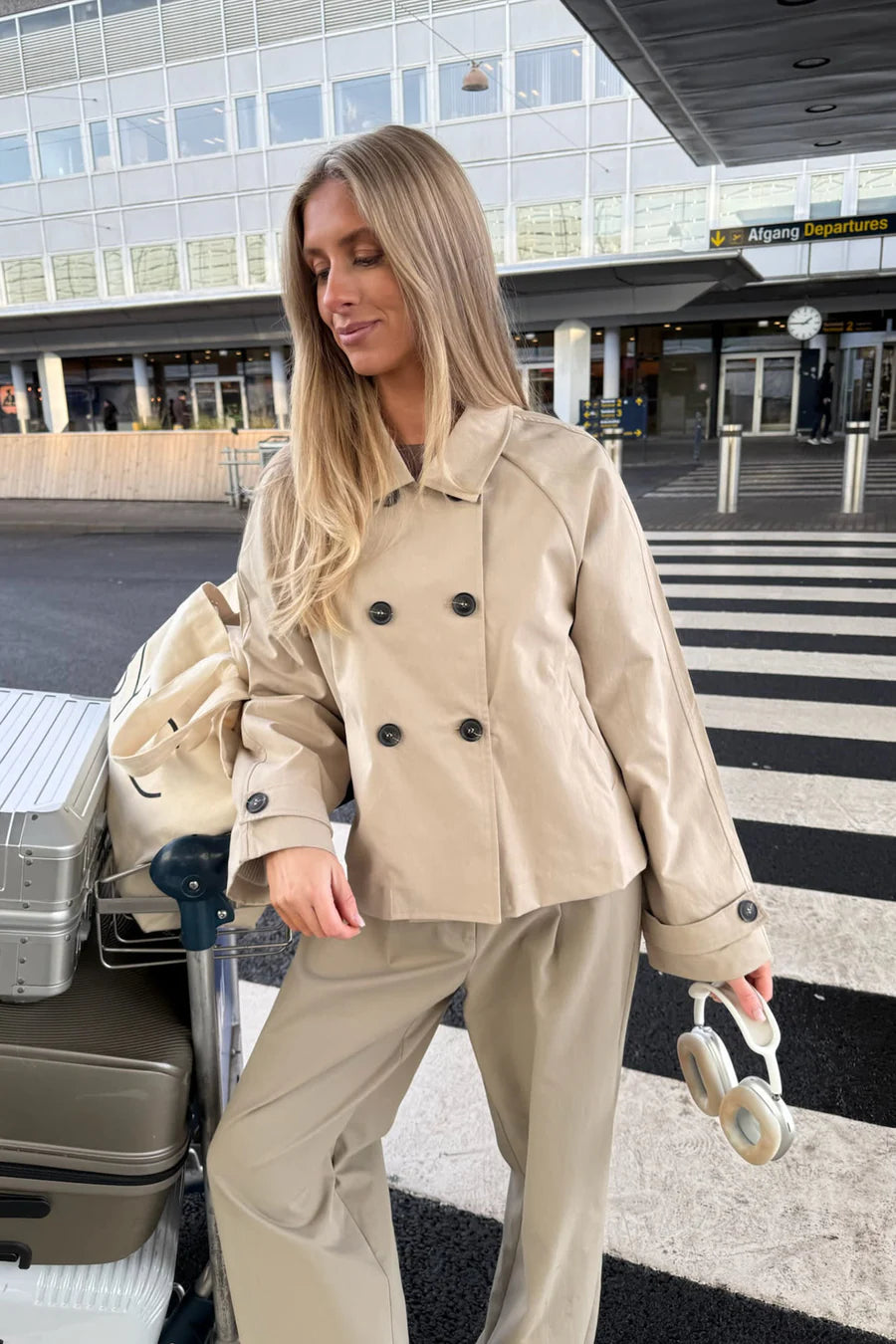 LunaIC Trenchcoat er en trendy og fin kort trenchcoat med knapper, lommer og uten knytebånd. Den korte jakken vil bli en favoritt i vår-, sommer- og høstgarderoben, og passer til ethvert antrekk!