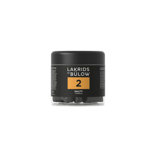 Small No. 2 Salty fra Lakrids by Bülow har den sterke, salte lakrisen med salmiakk eksploderer smaken. Som av hav, tjære, røyk fra bål og lukten av harpiks. No. 2 er den absolutte favoritten i de nordiske landene.