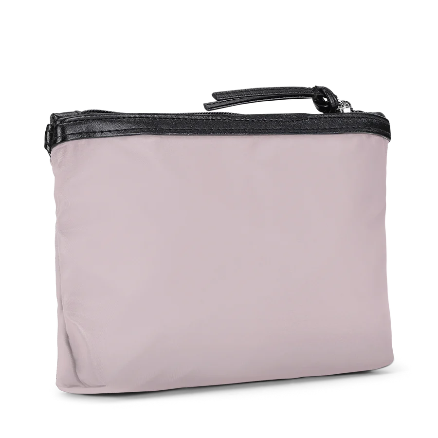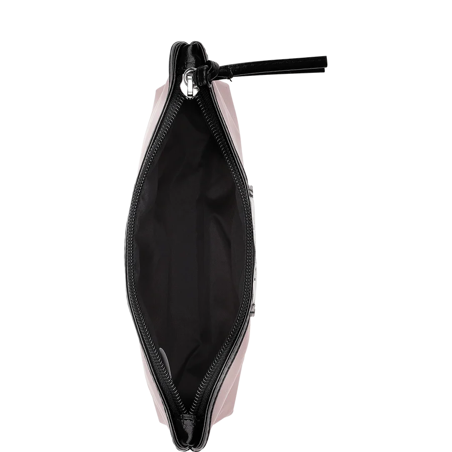 Sørg for at du har tømt posen din og at du har kvittet deg med alt støv og rusk inne i posen før rengjøring. Bruk en fuktig, myk og hvit klut med varmt vann. Vri ut overflødig vann fra kluten og tørk av vesken med forsiktige, men faste bevegelser. Flytt kluten rundt skinntilbehør, knapper, innlegg eller applikasjoner for å sikre at de holder seg trygge.
