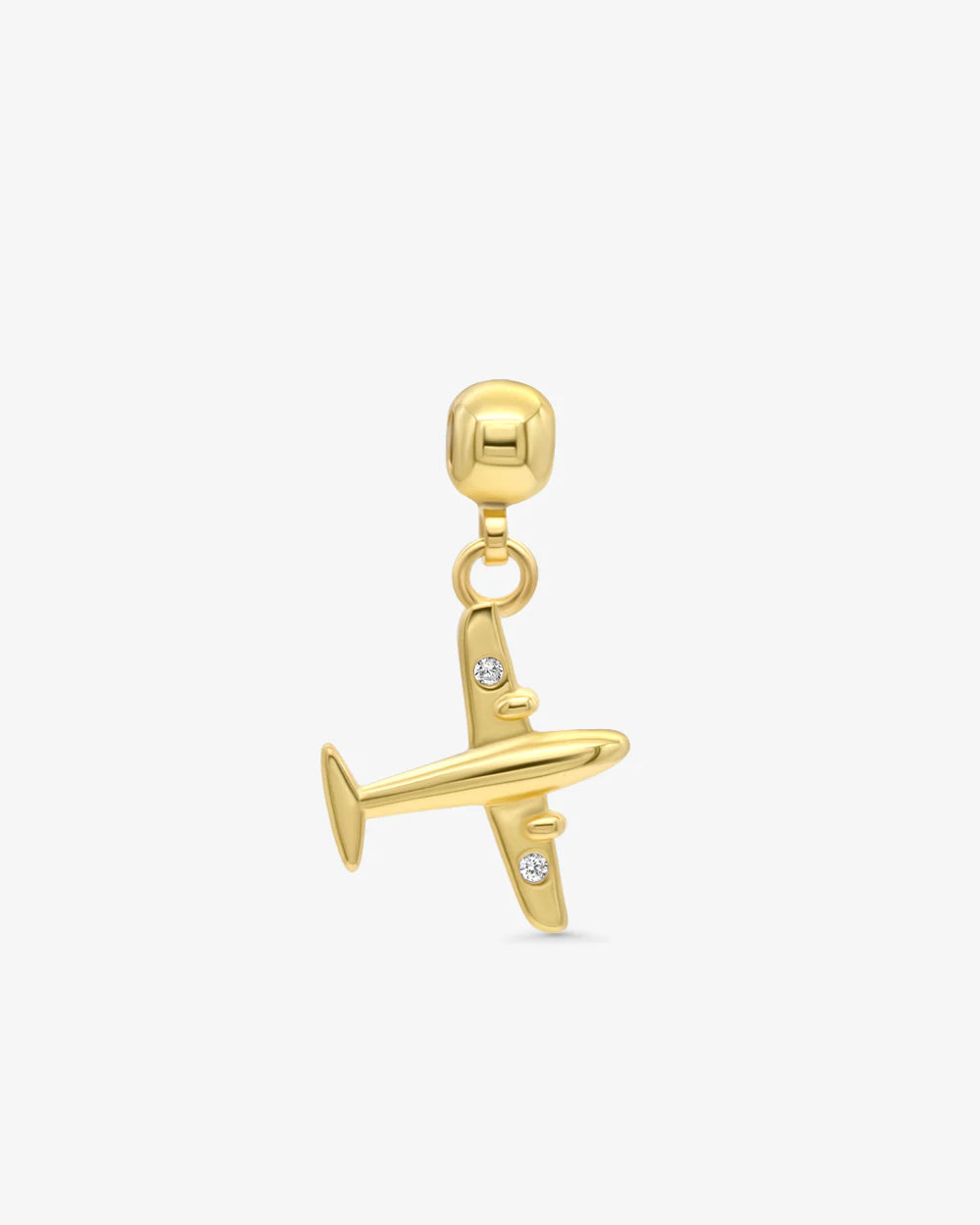 Airplane Charm Gold fra Who Is She. Et delikat anheng med fly som passer perfekt til merkets charm-halskjede eller armbånd. Hver charm selges separat uten kjede. Dette er en Limited Edition, produsert i et svært begrenset antall.